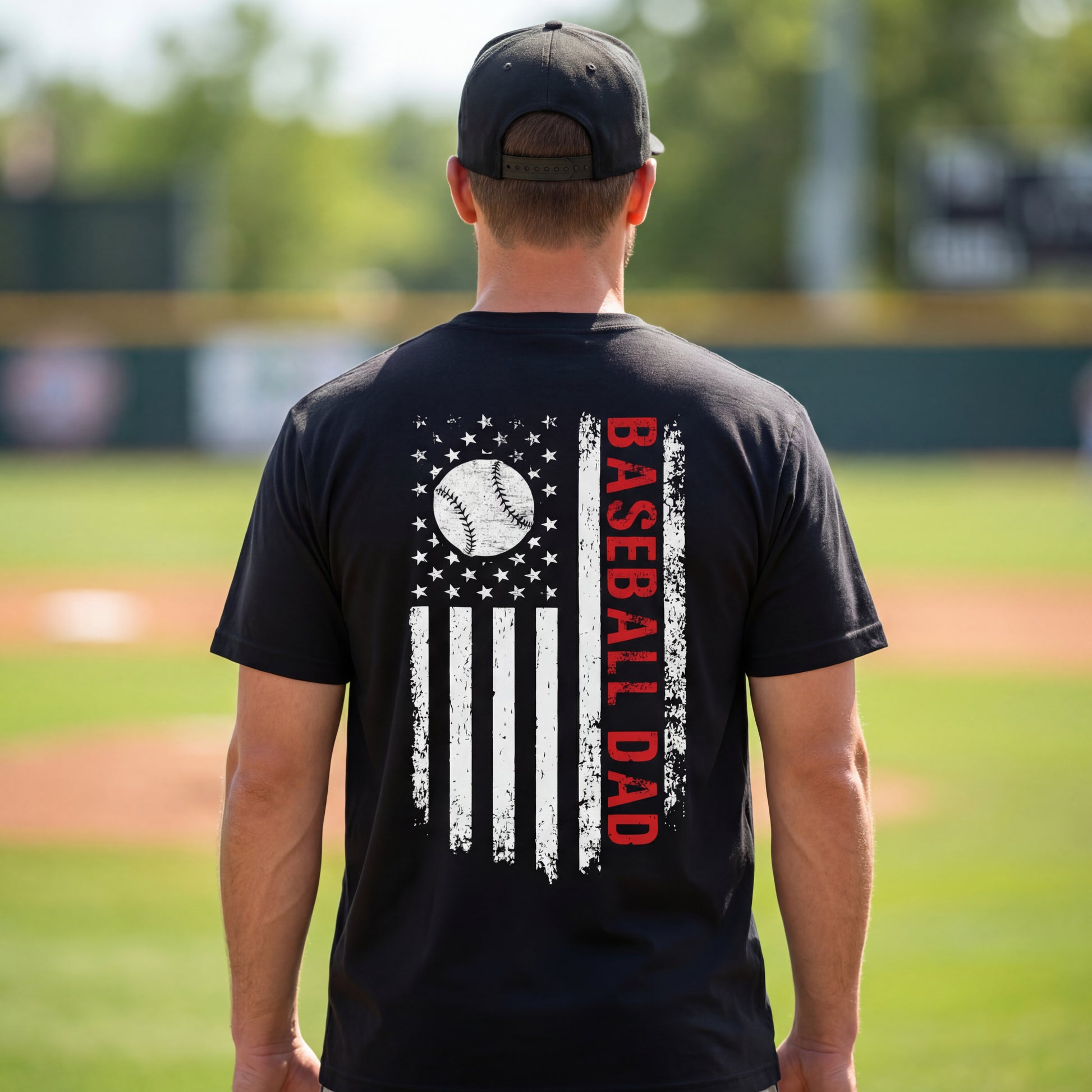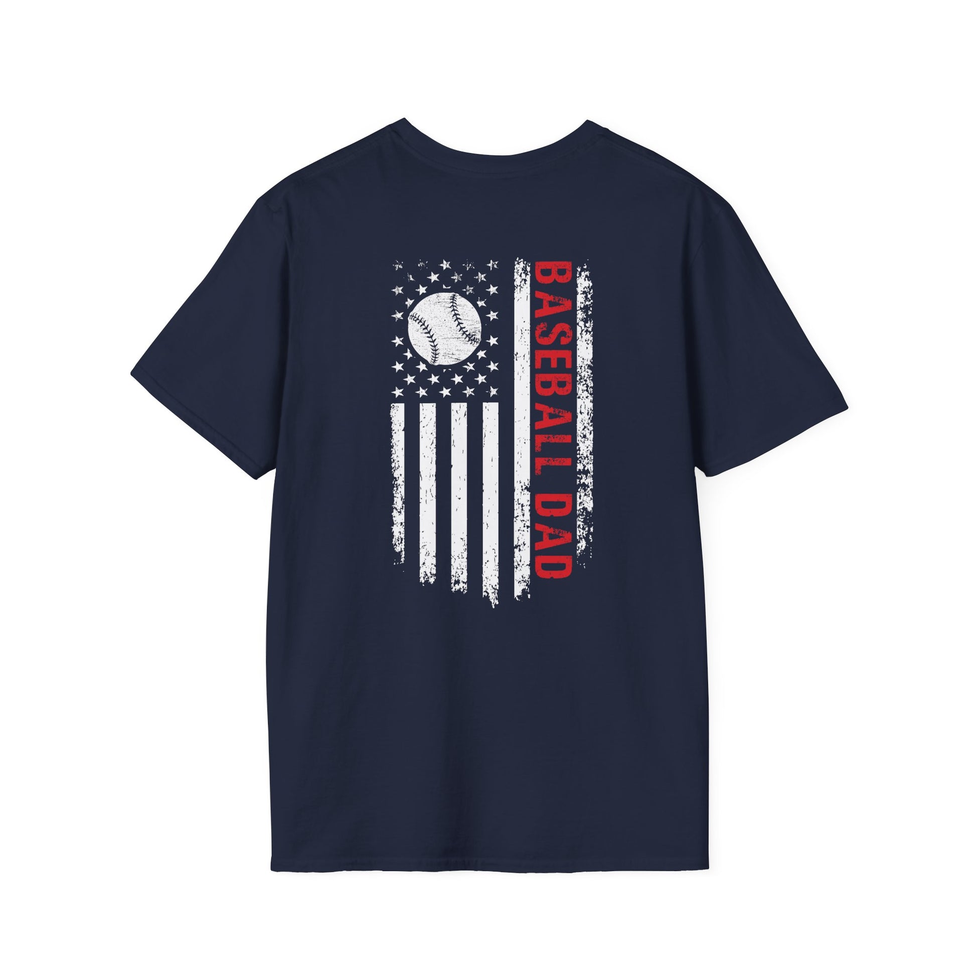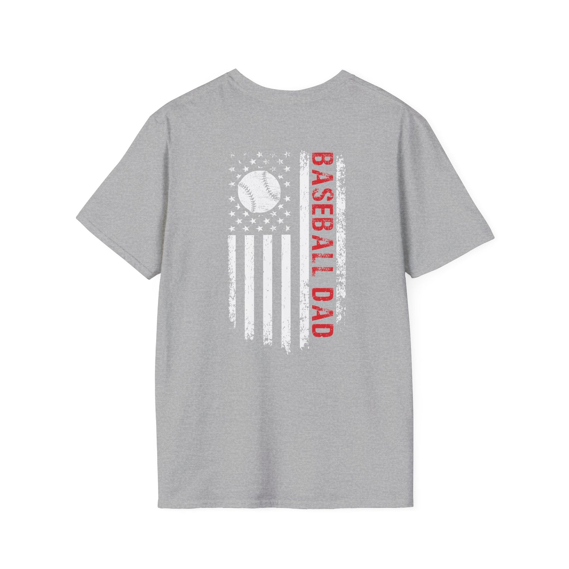 Built for the dads who never miss a game. This soft, lightweight tee features a bold distressed American-flag design with a baseball twist and vertical “BASEBALL DAD” lettering that makes a statement from the back — proud, simple, and unmistakably game-day ready.