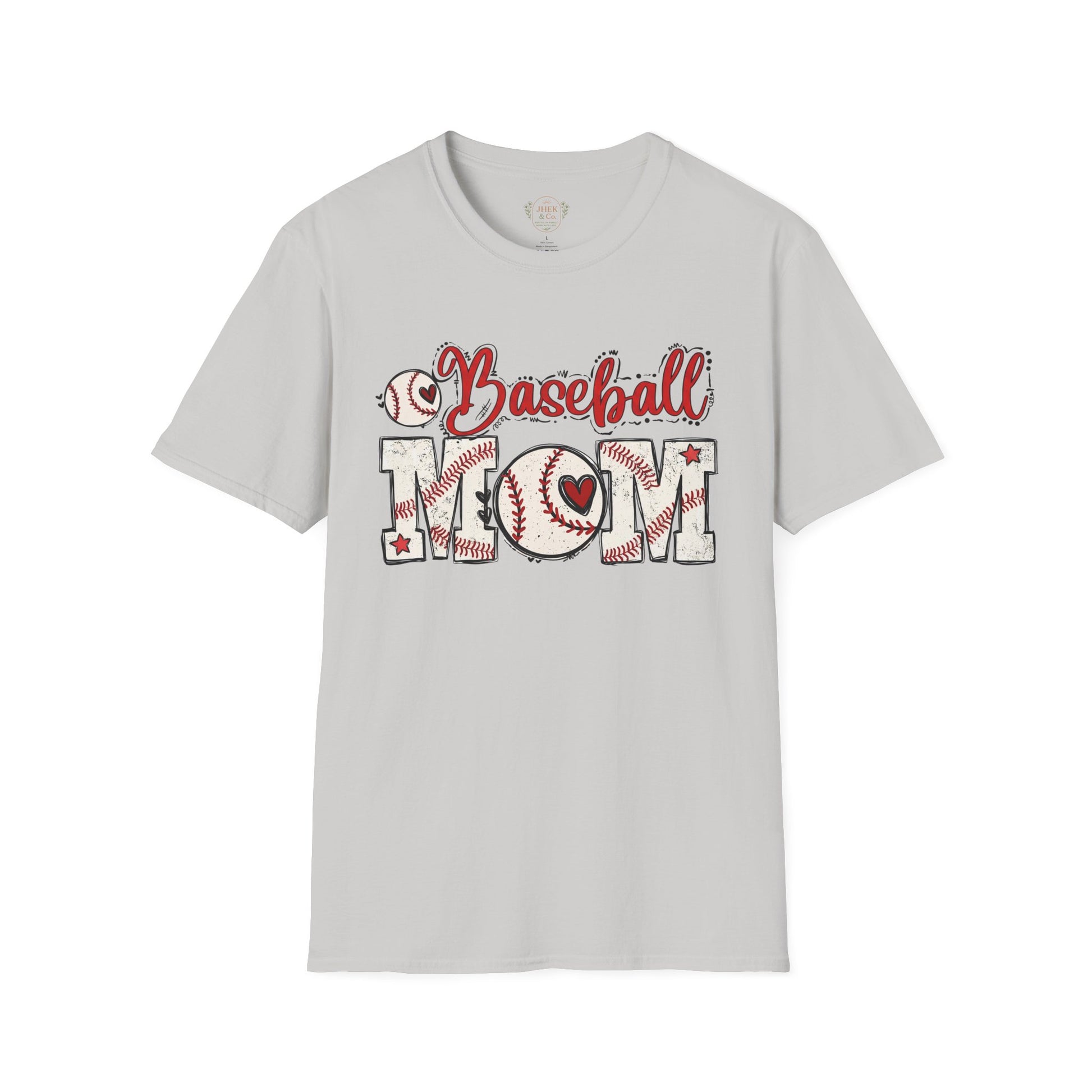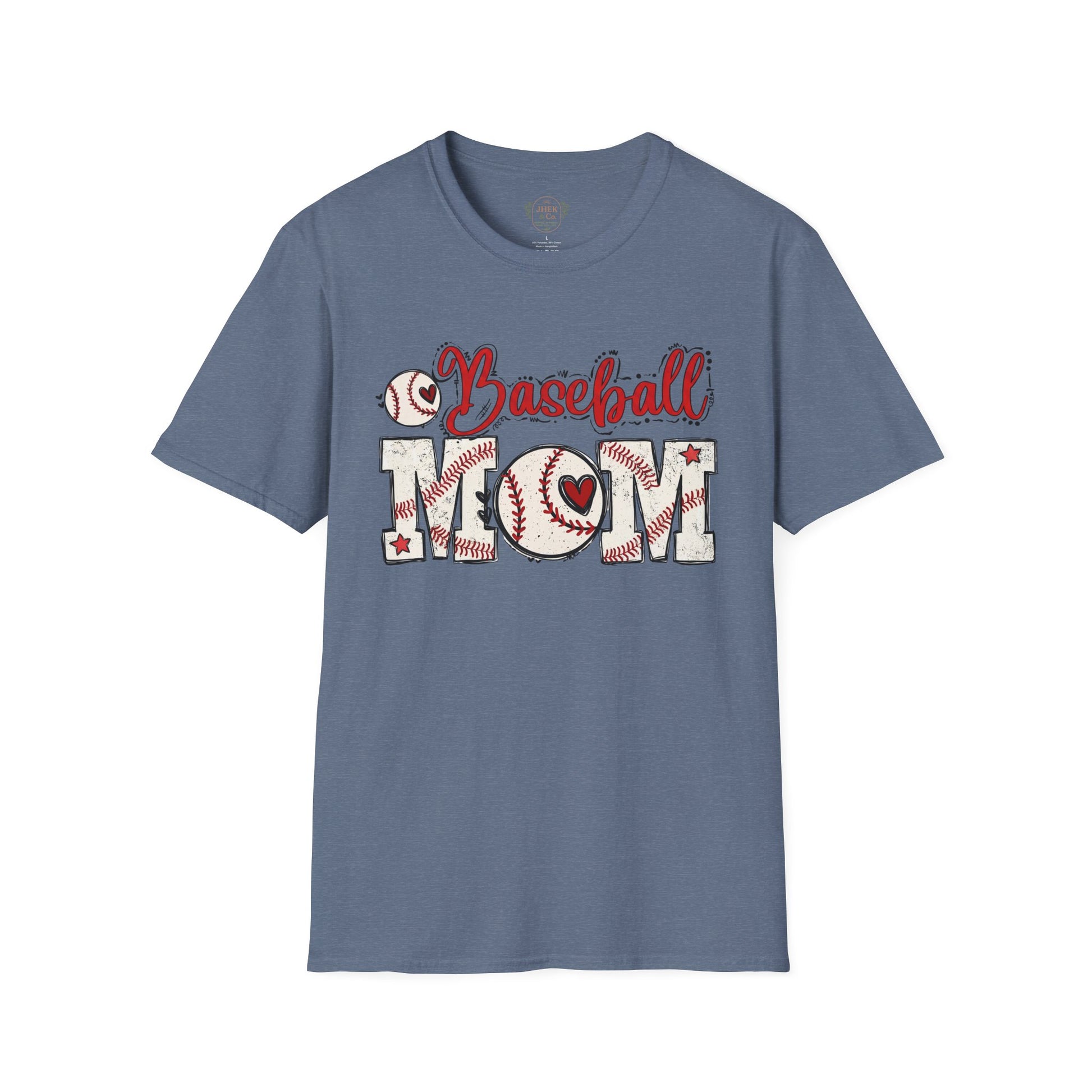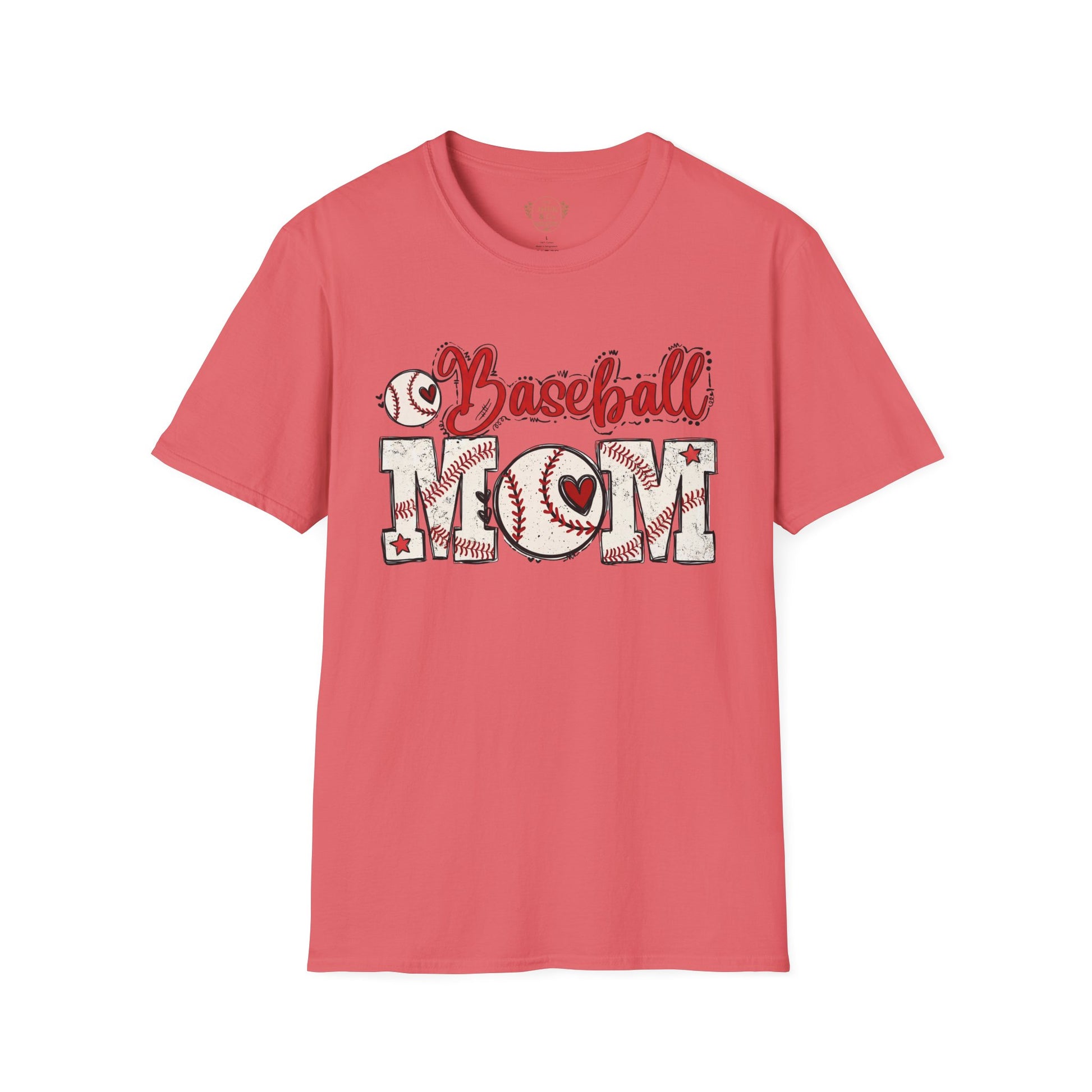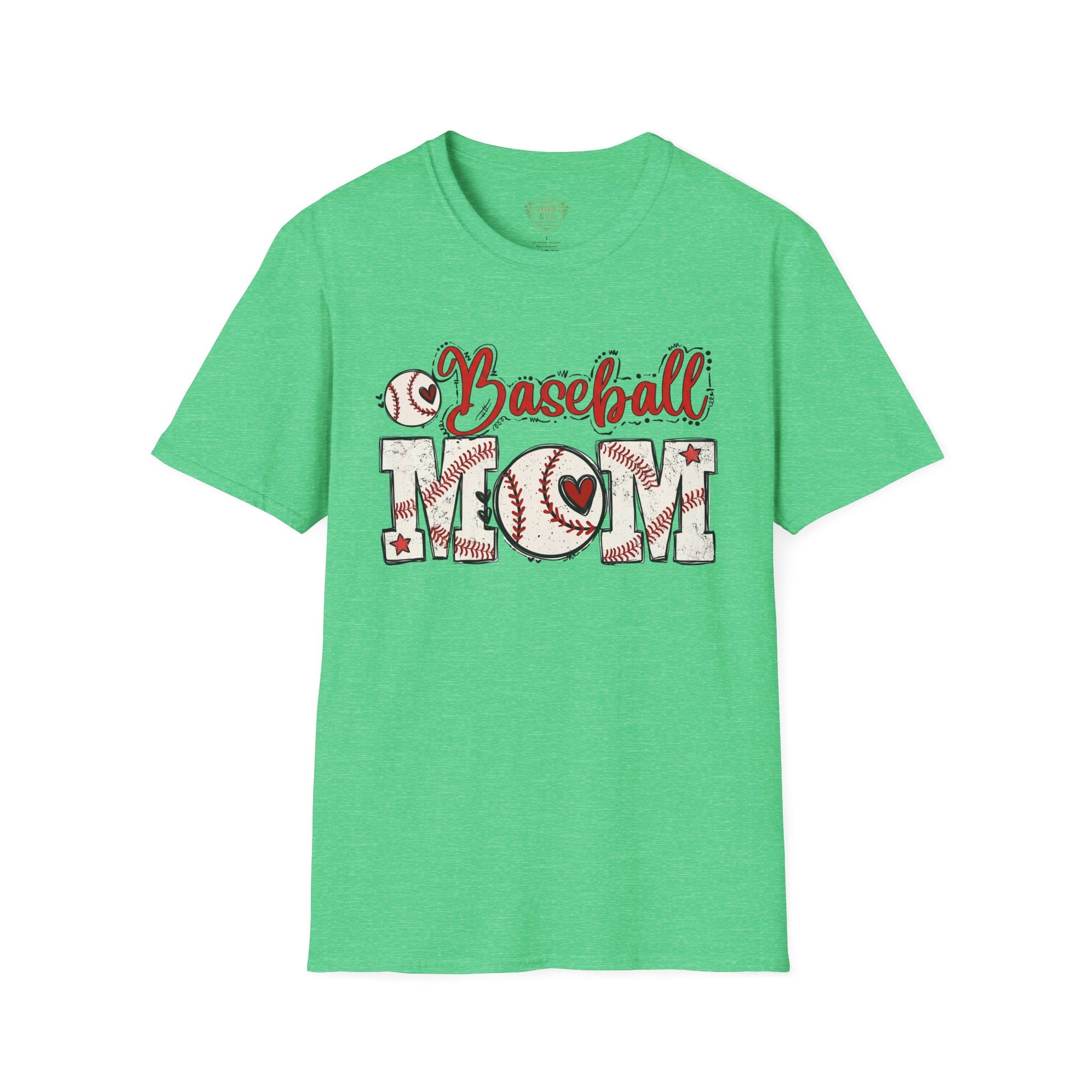 The front features a warm, hand-drawn “Baseball Mom” design where stitched details, bats, and a small heart come together in varsity-inspired lettering. It reads like a quiet badge of loyalty — familiar, proud, and earned. A classic crew neckline and easy fit keep things comfortable and flattering, while breathable cotton makes it effortless to wear all day.