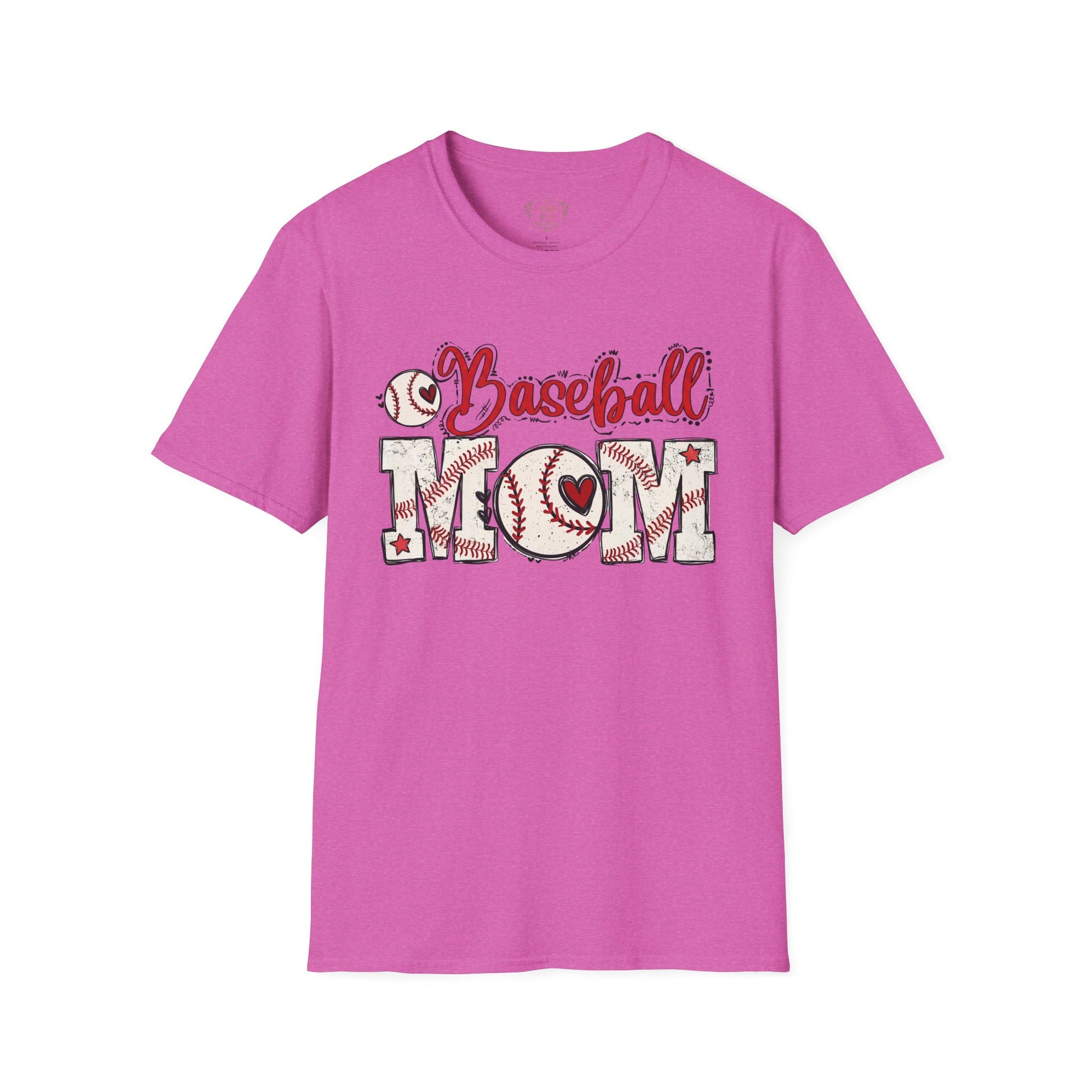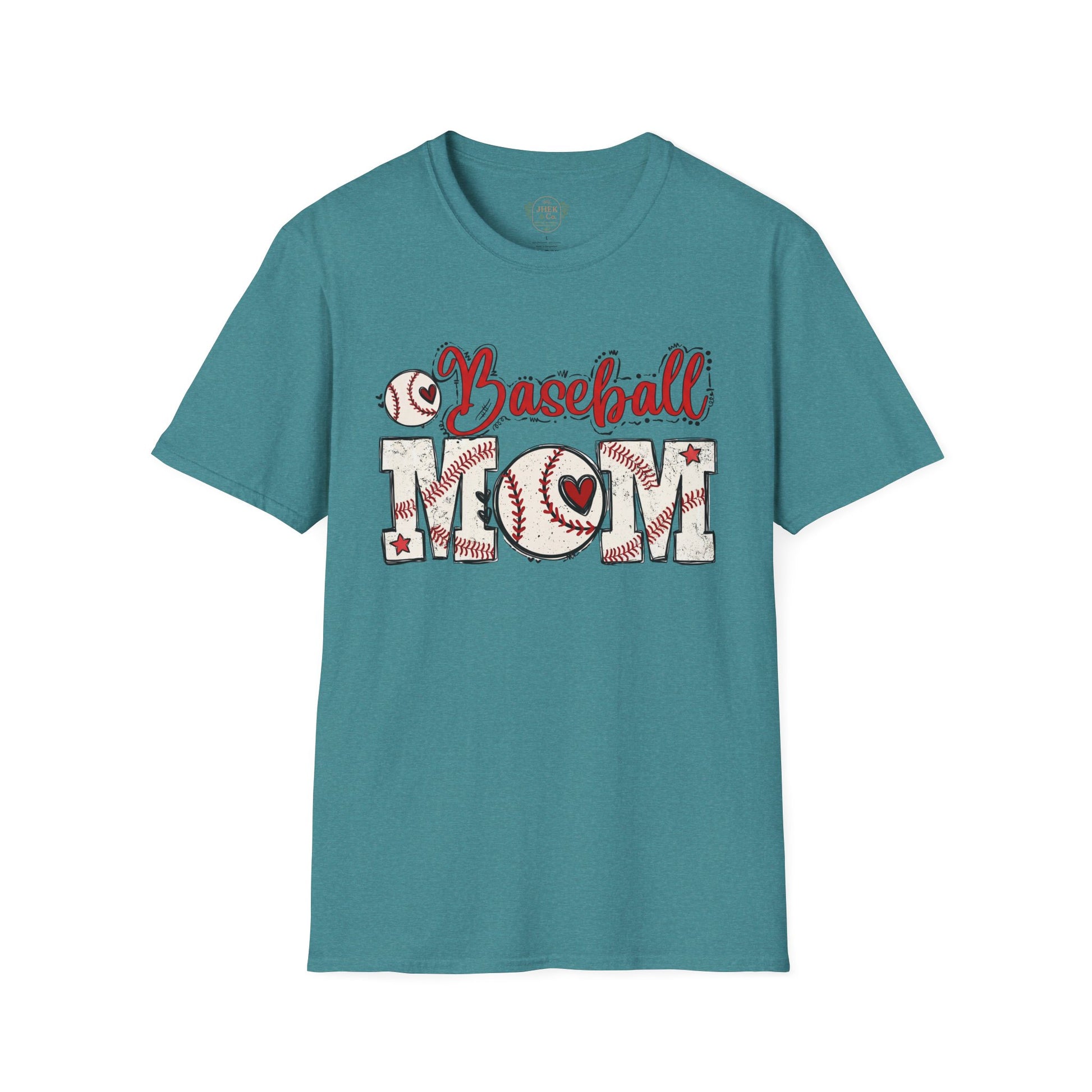 Baseball Mom T-Shirt – Vintage Baseball Script & Heart Stitching Design