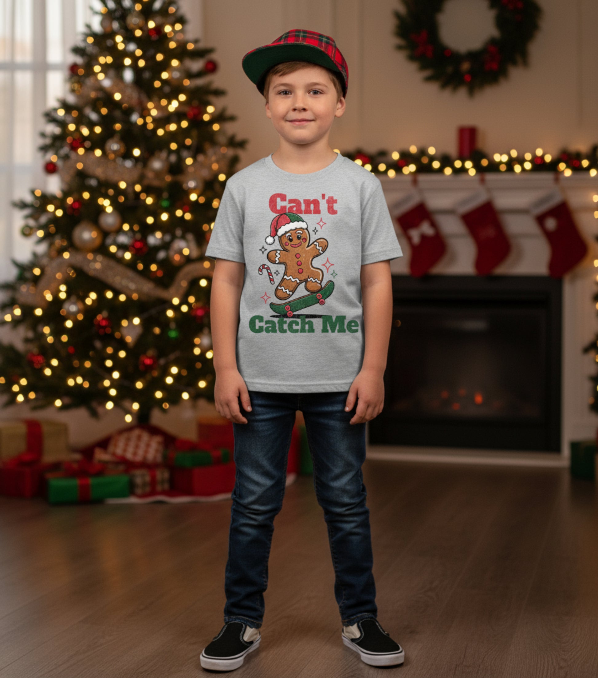 Your little one will be full of holiday spirit (and energy!) in this Can’t Catch Me tee — featuring an adorable gingerbread man catching air on his skateboard with a candy cane in hand. It’s the perfect mix of festive fun and comfy style for Christmas parties, school events, or cozy days at home.