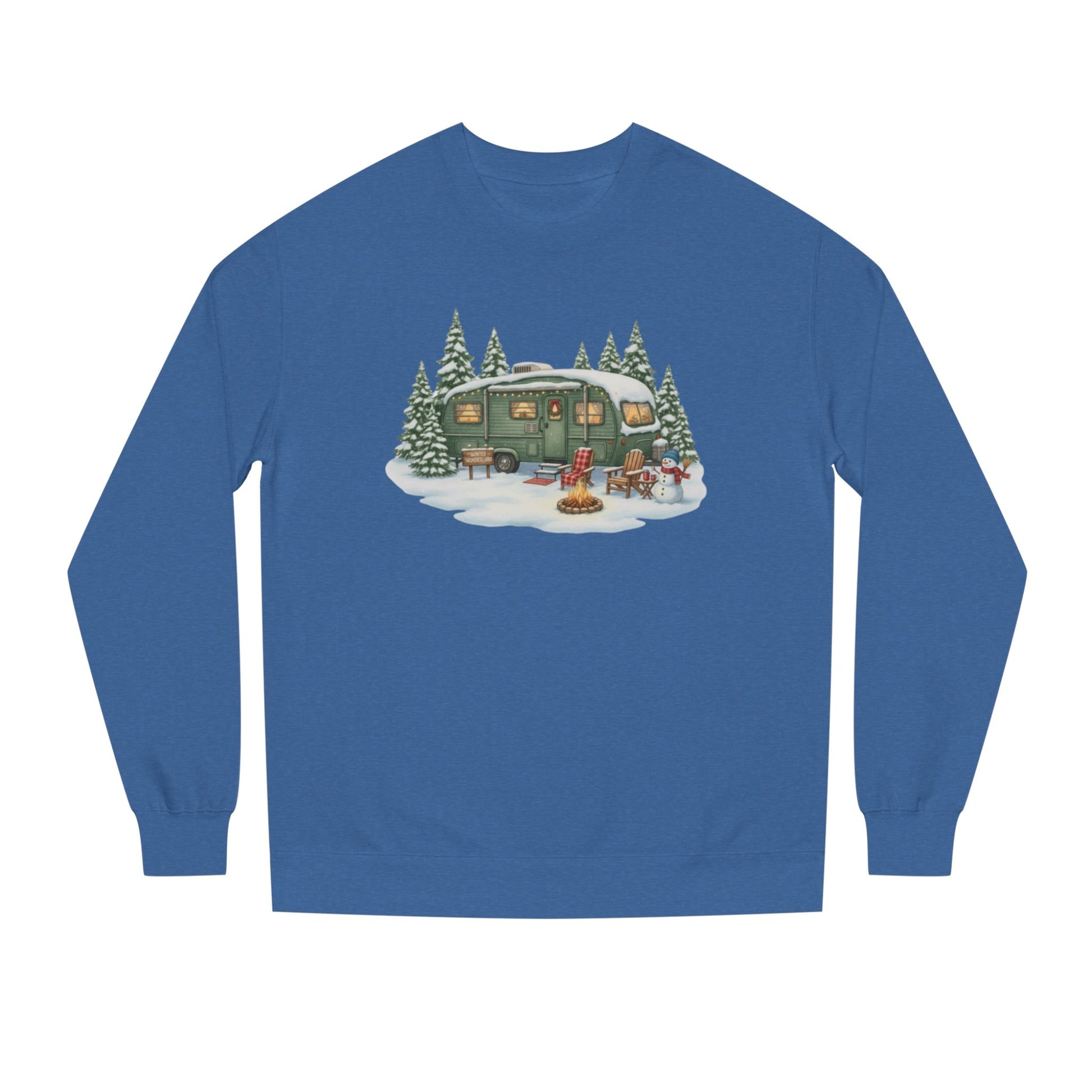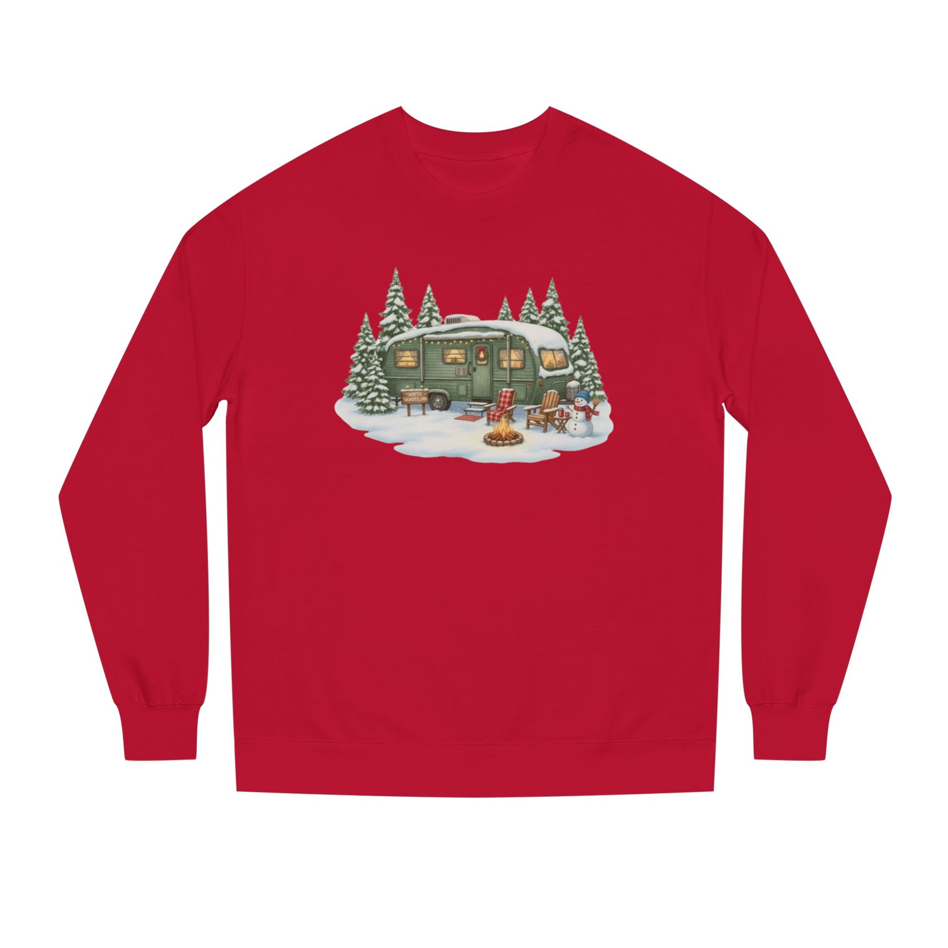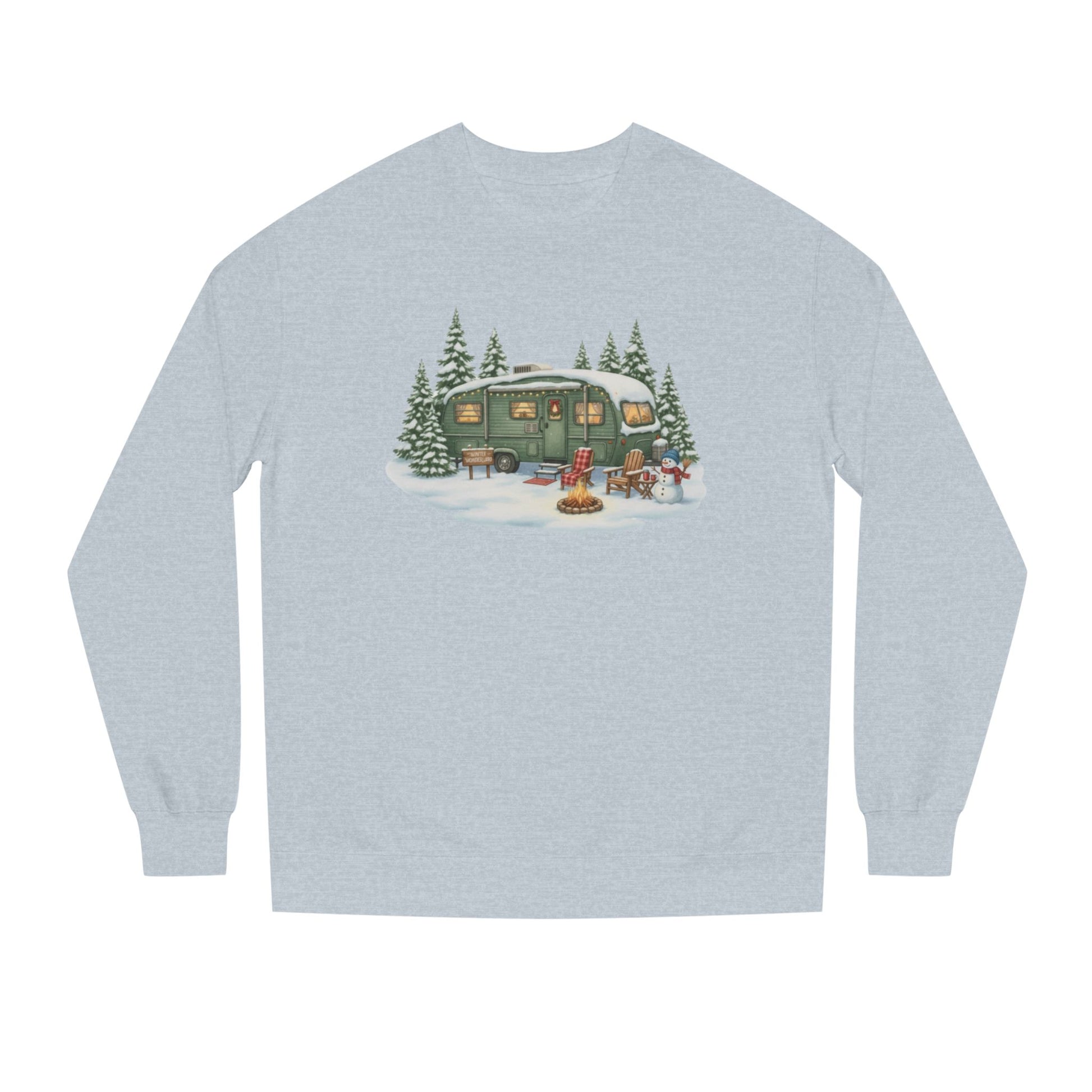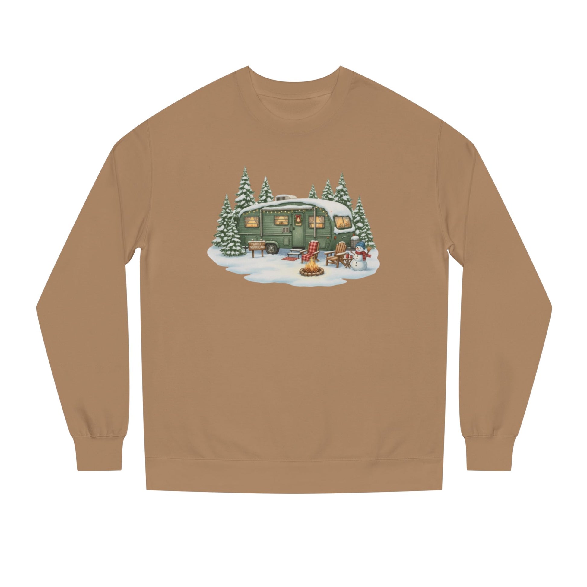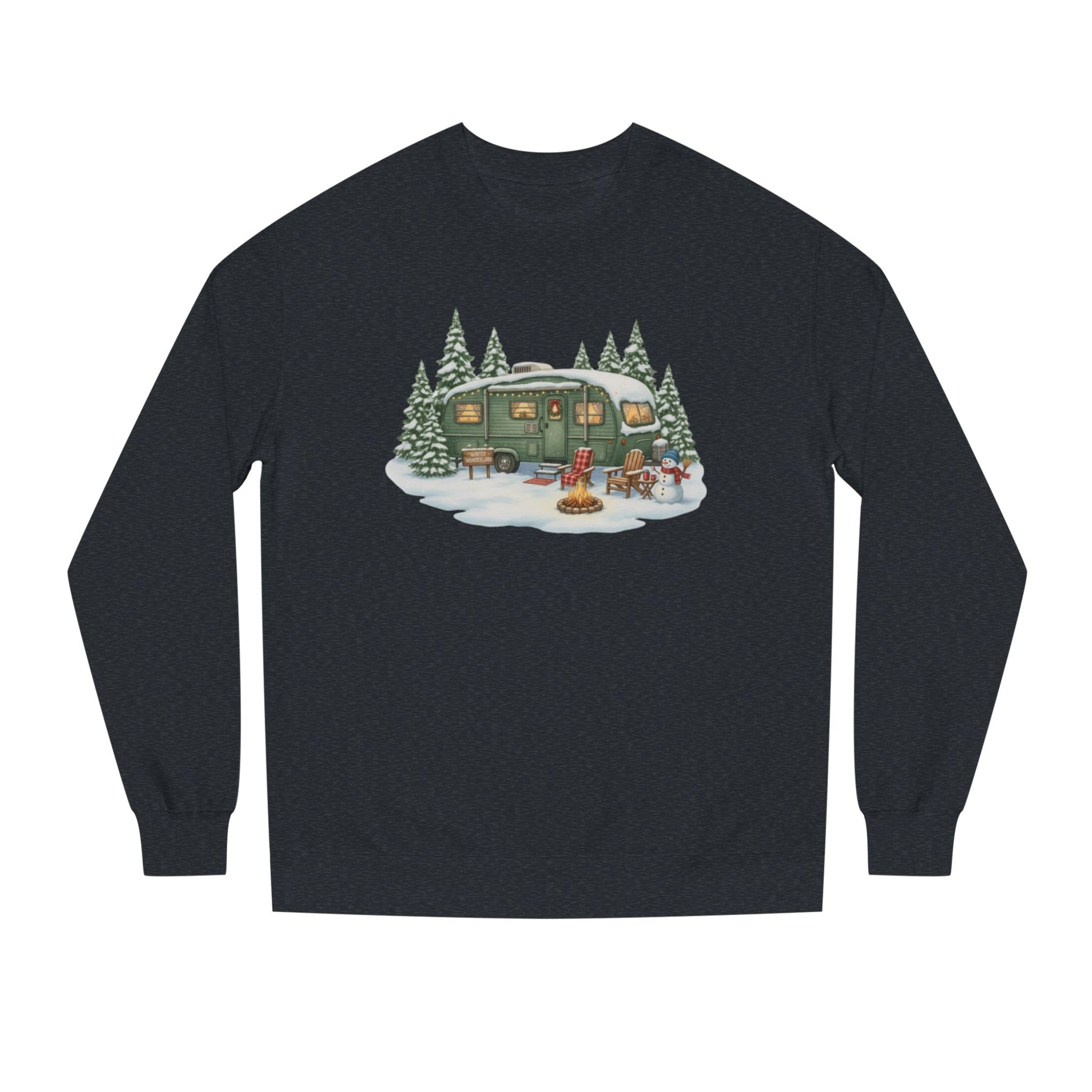 Cozy Winter Camper Sweatshirt — Vintage Trailer Campfire Holiday Crewneck