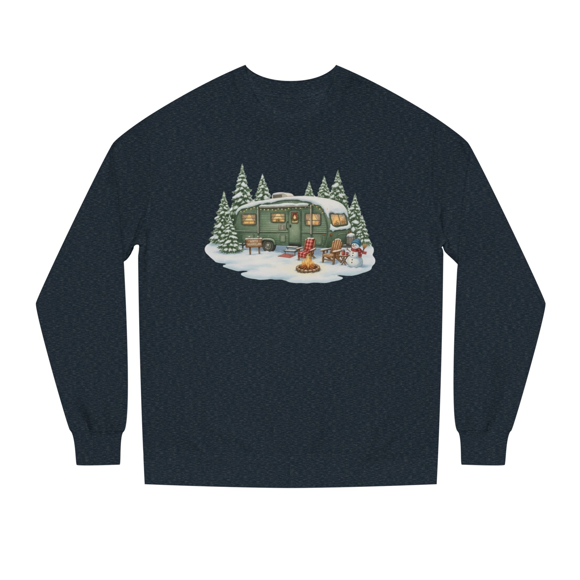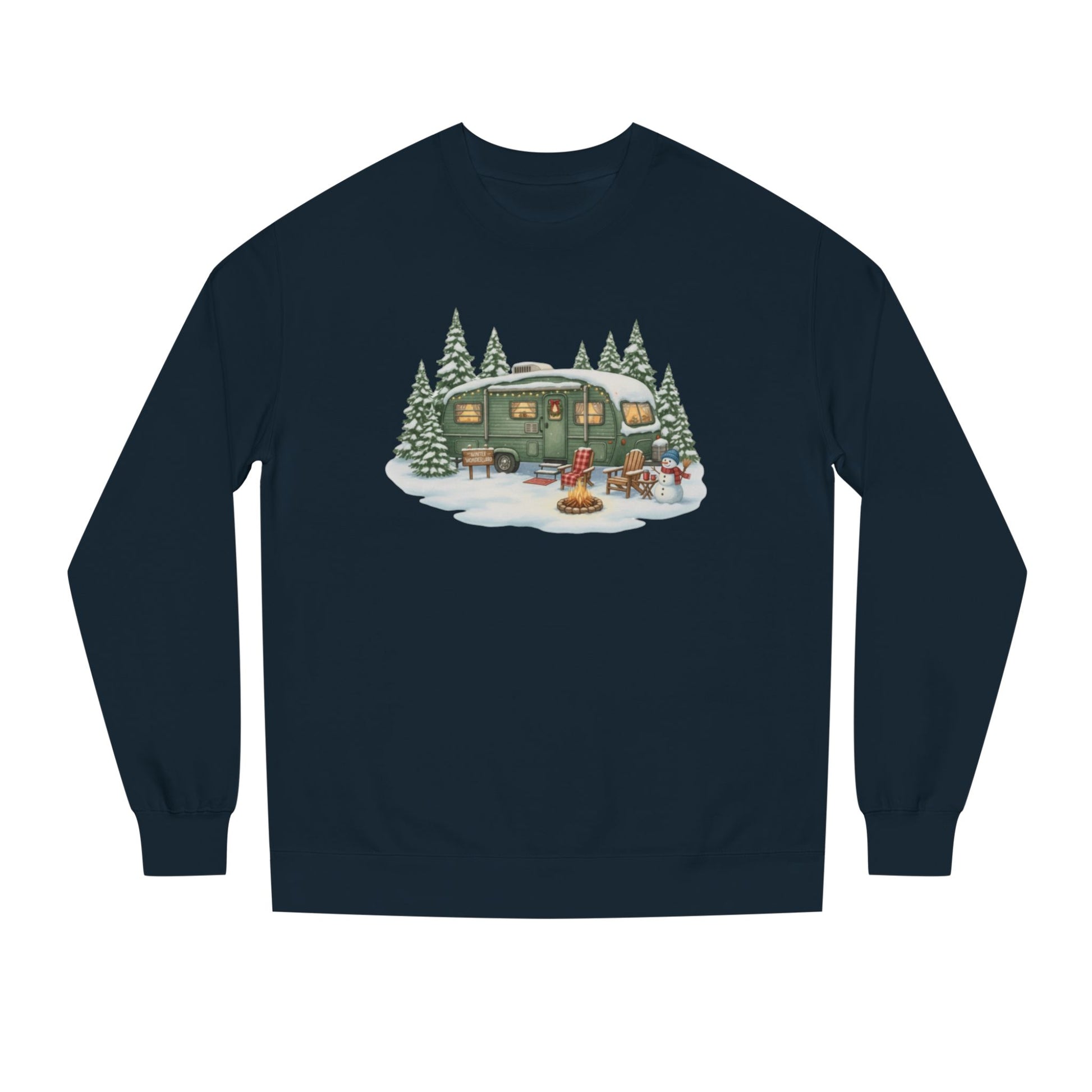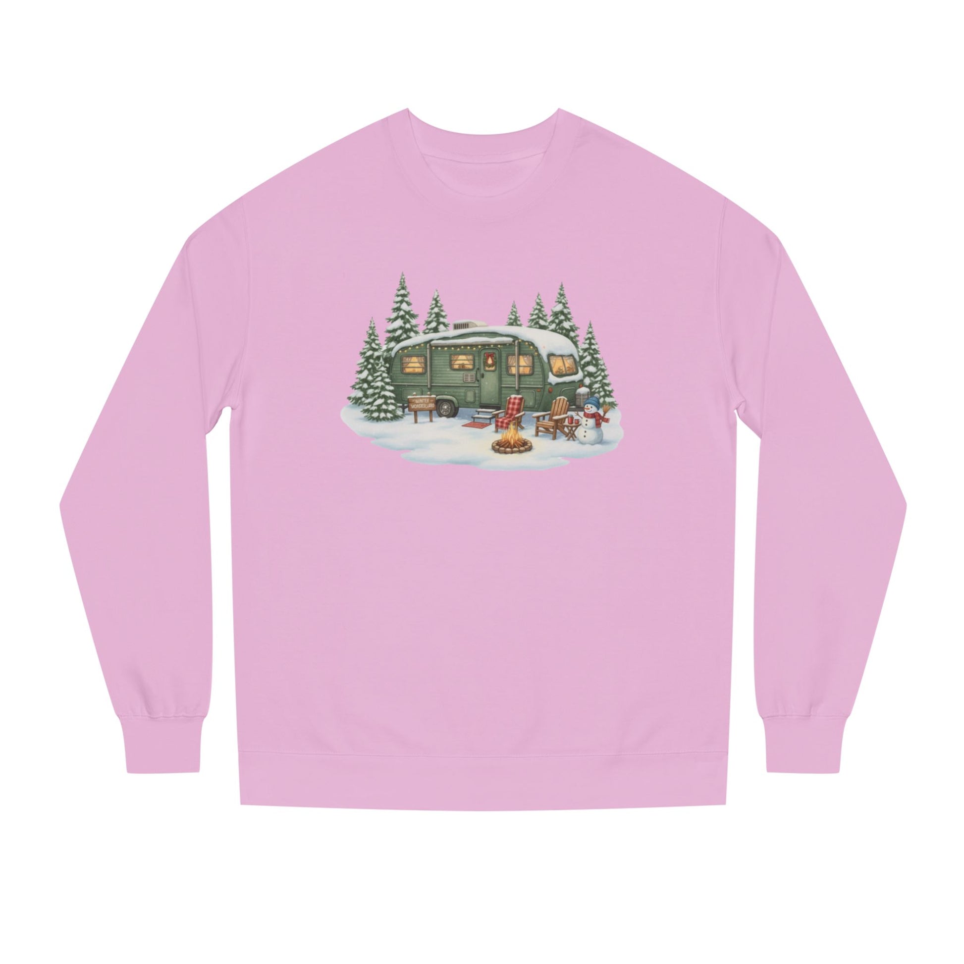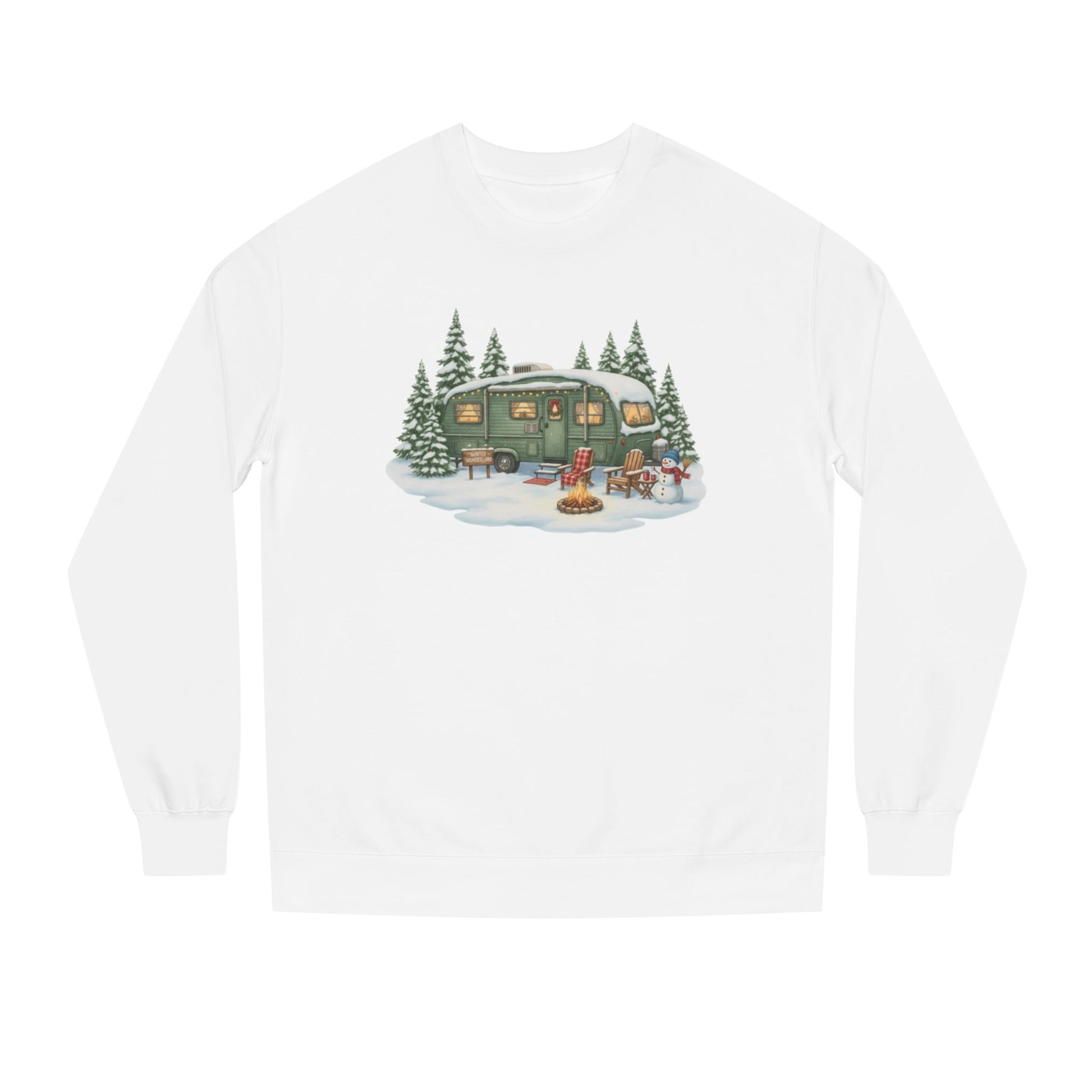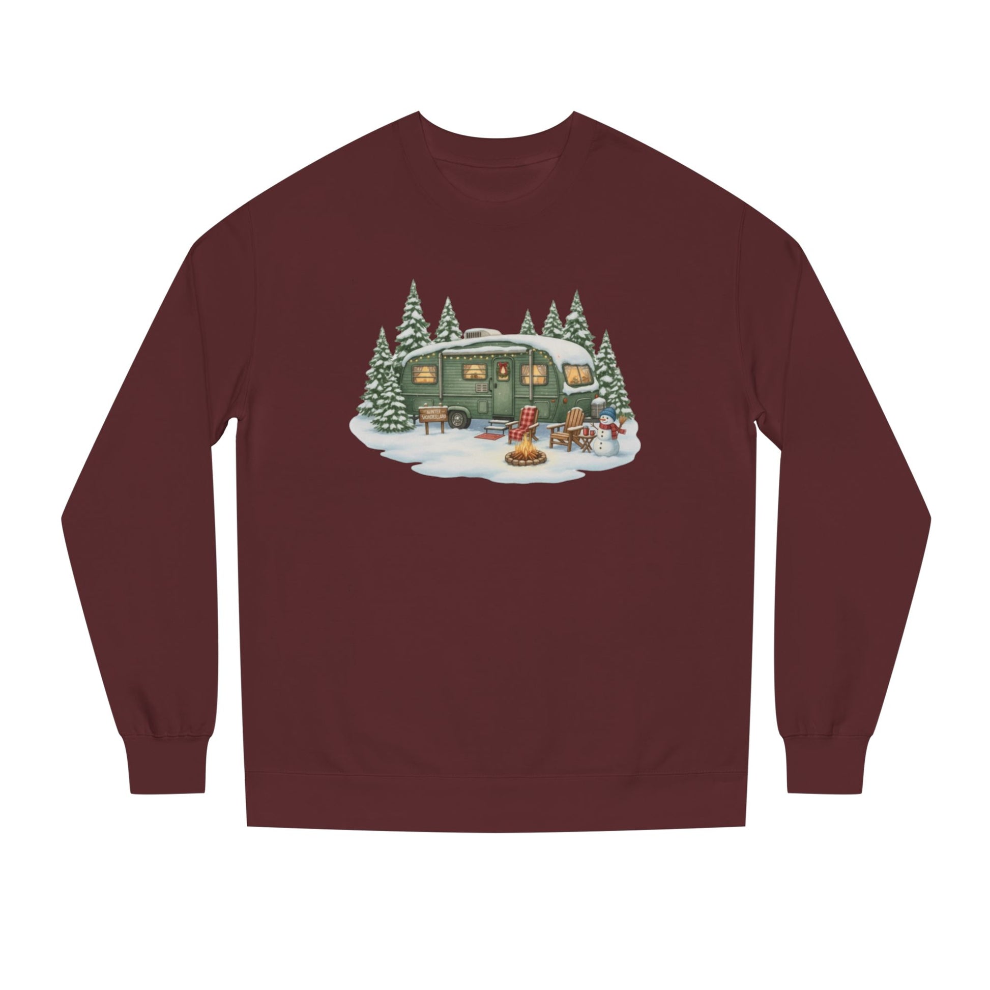 Cozy Winter Camper Sweatshirt — Vintage Trailer Campfire Holiday Crewneck