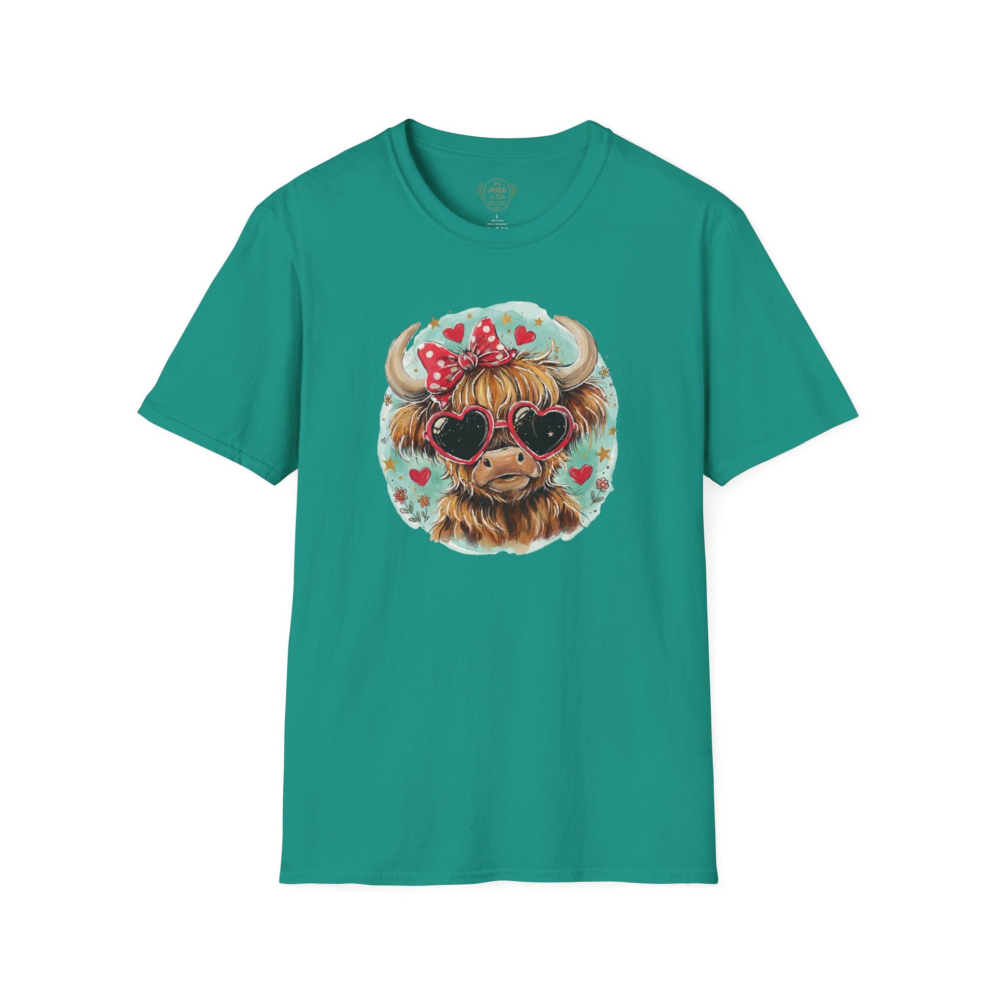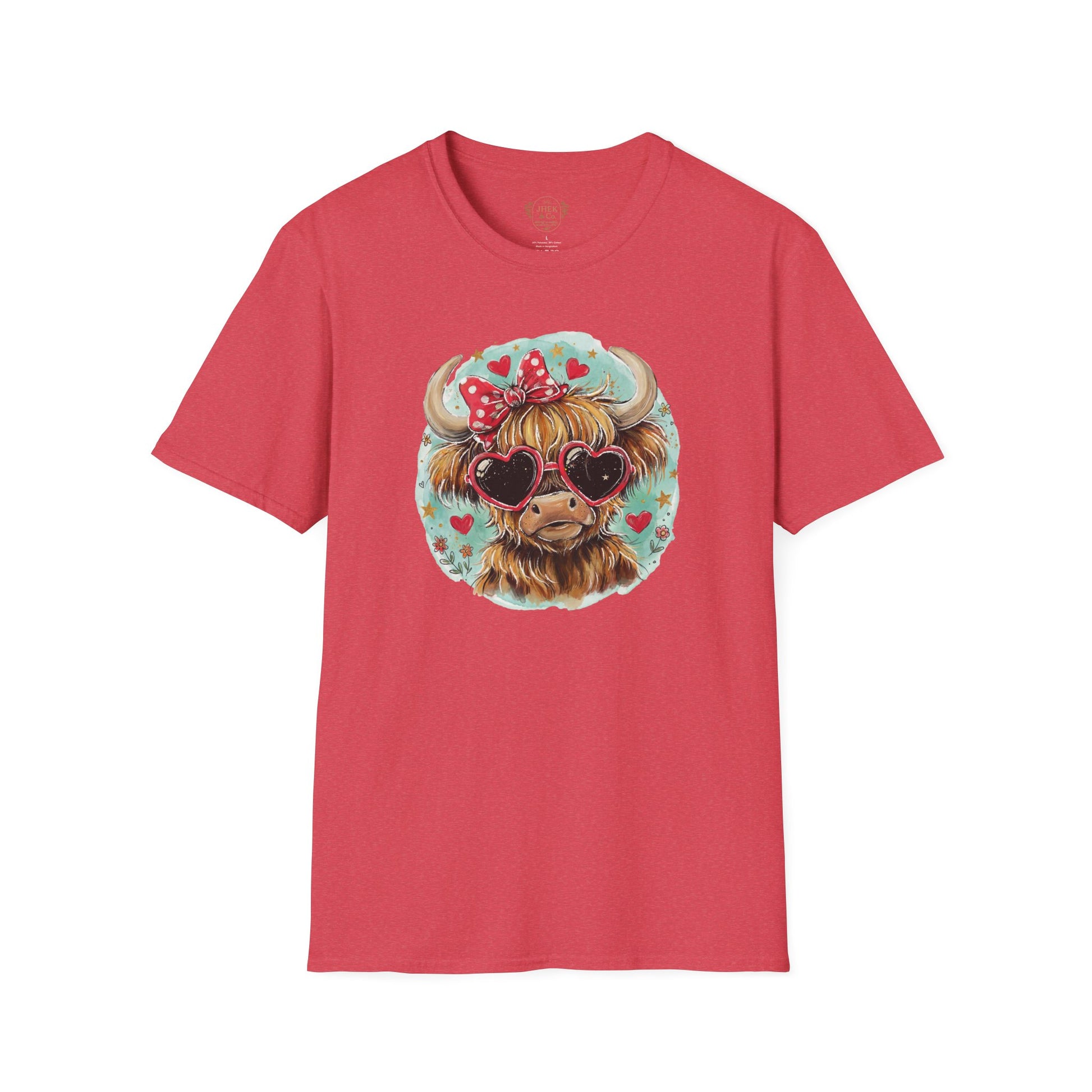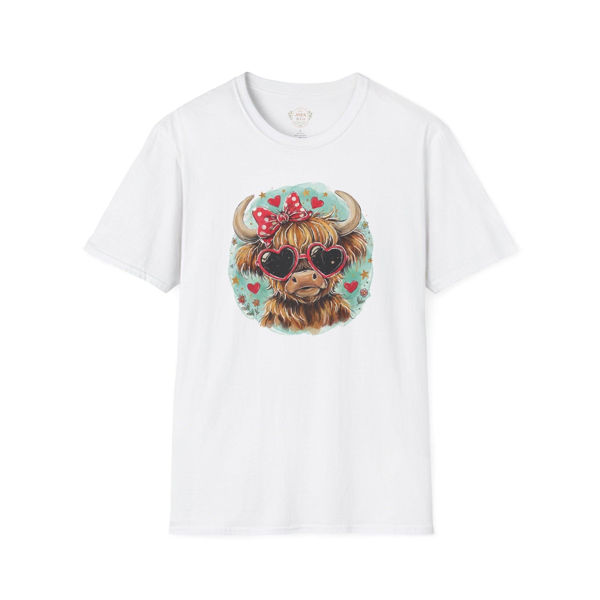 Highland Cow Valentine T-Shirt — Cute Heart Sunglasses Cow Graphic Tee