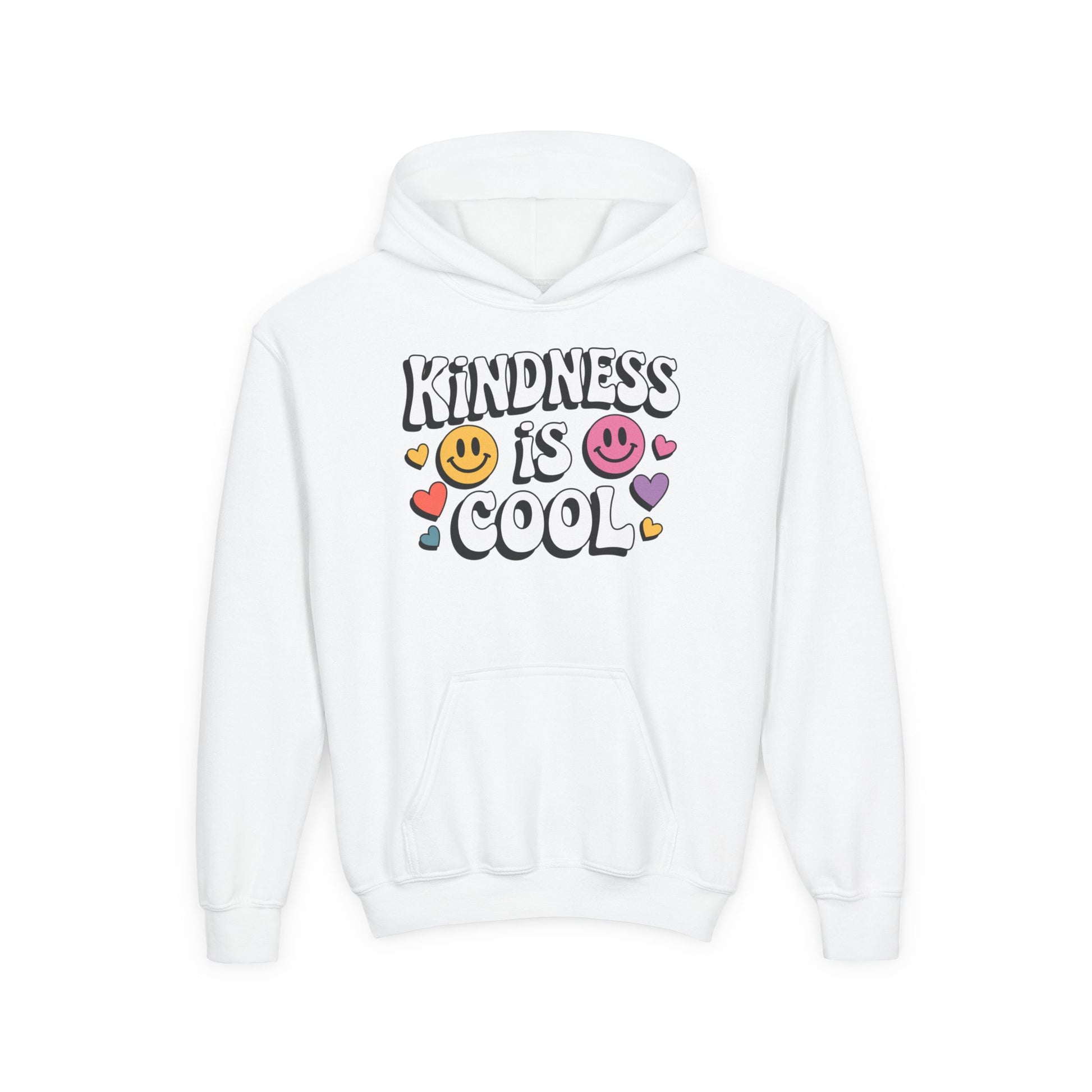 Let your little one spread positivity wherever they go with this Kindness Is Cool hoodie! Featuring colorful smiley faces, hearts, and playful bubble lettering, this cheerful design reminds everyone that kindness never goes out of style. The bright, fun graphic pops beautifully against the cozy fabric, making it a feel-good favorite for kids who love to stand out and share good vibes.