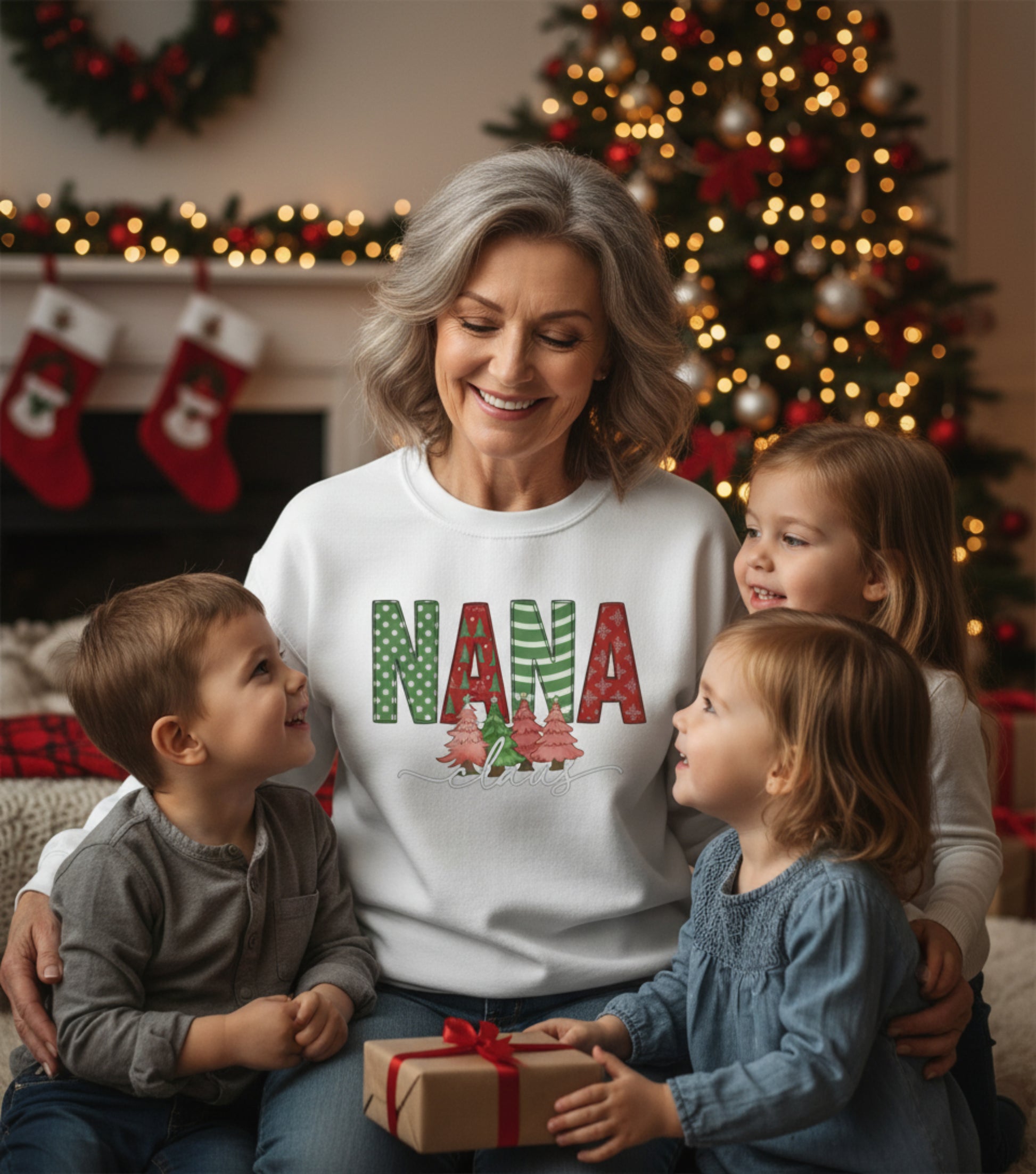 With its classic unisex fit, this sweatshirt layers easily over tees or pajamas and keeps Nana comfy from Christmas morning photos to late-night cocoa refills. A must-have piece for the holiday season — and the grandkids will love it!