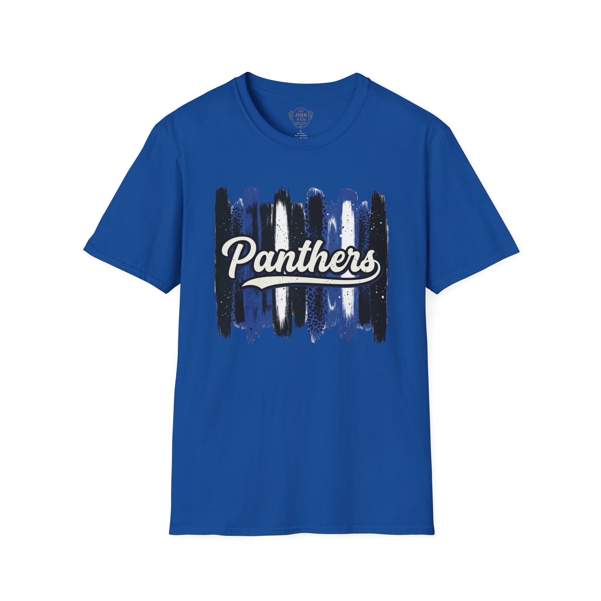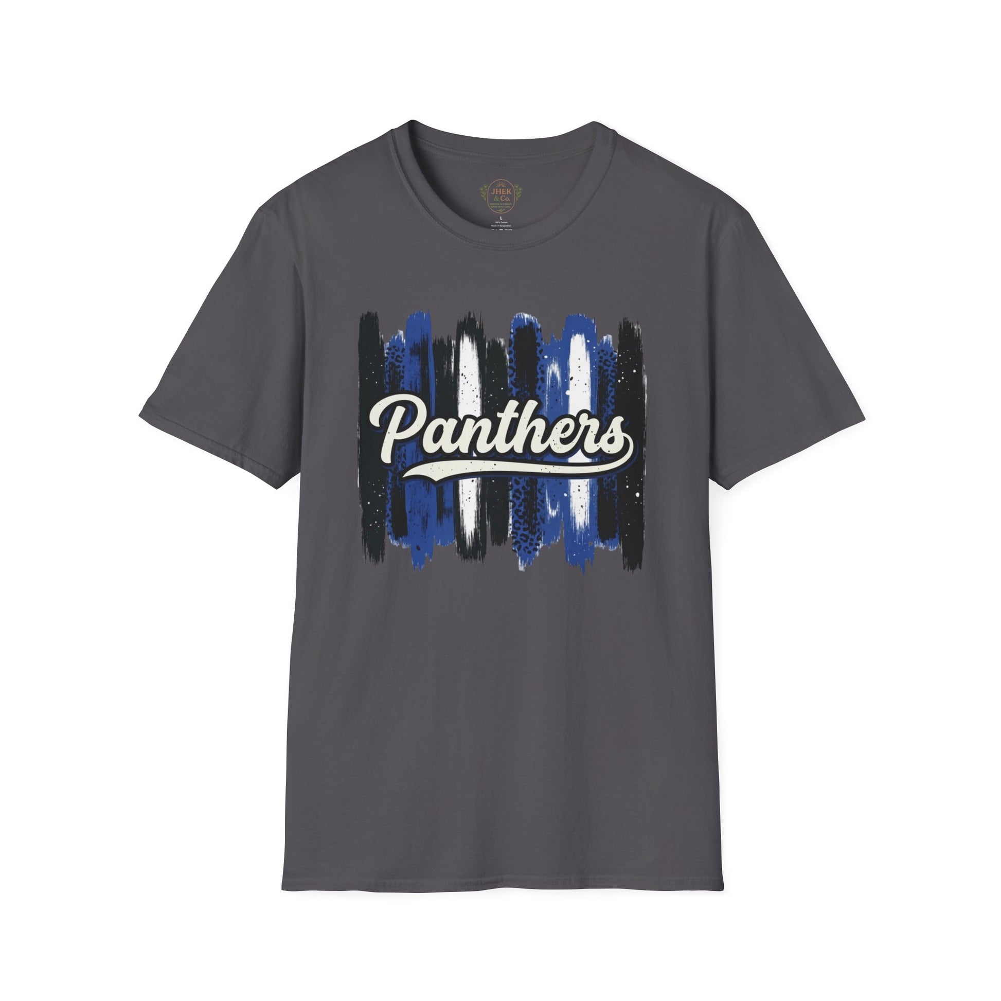 Show off your Panther pride in a tee that blends classic school spirit with an artistic, modern feel. This lightweight crewneck features bold, painterly brushstrokes in deep navy, black, and white, layered behind a vintage-style “Panthers” script for a look that feels sporty yet handcrafted.