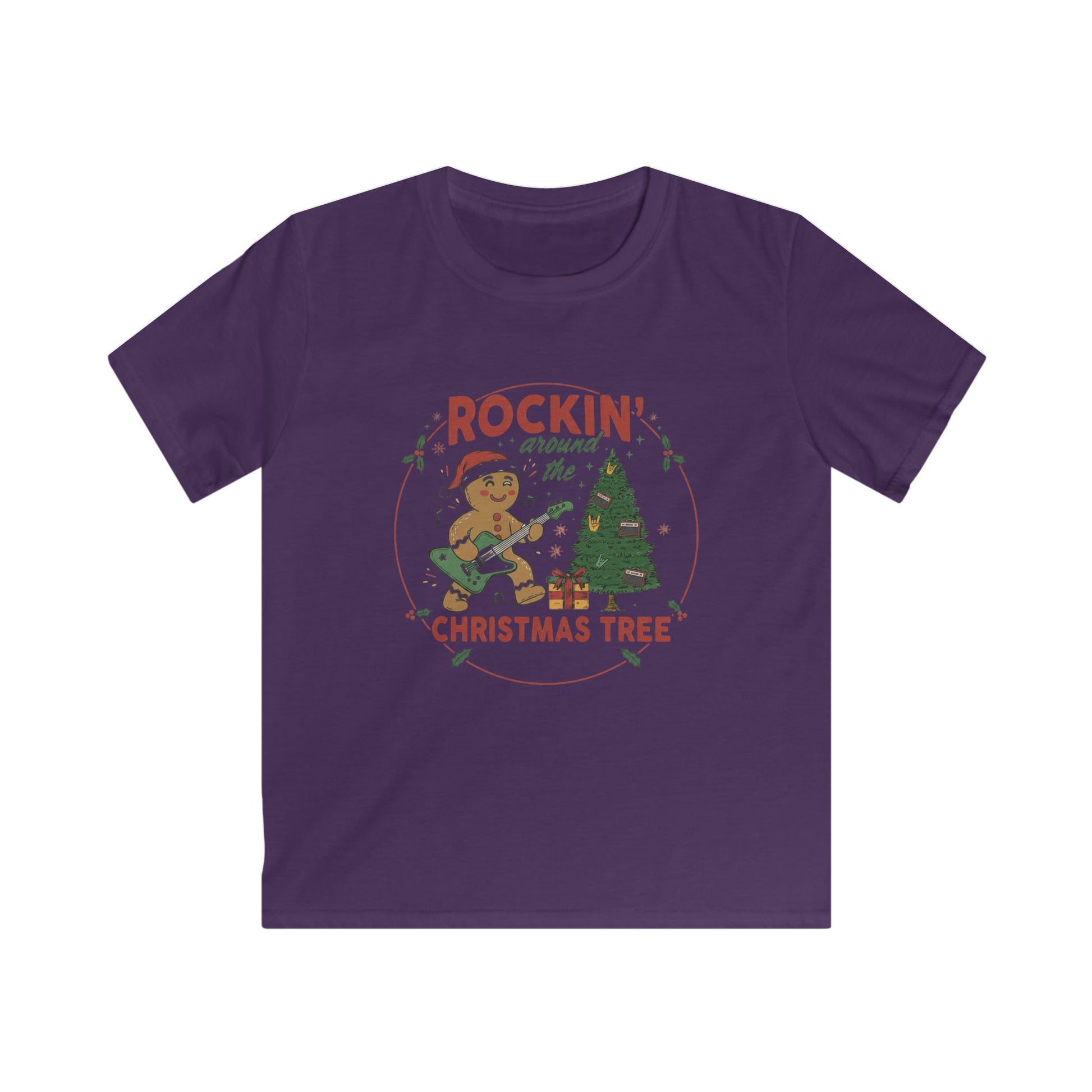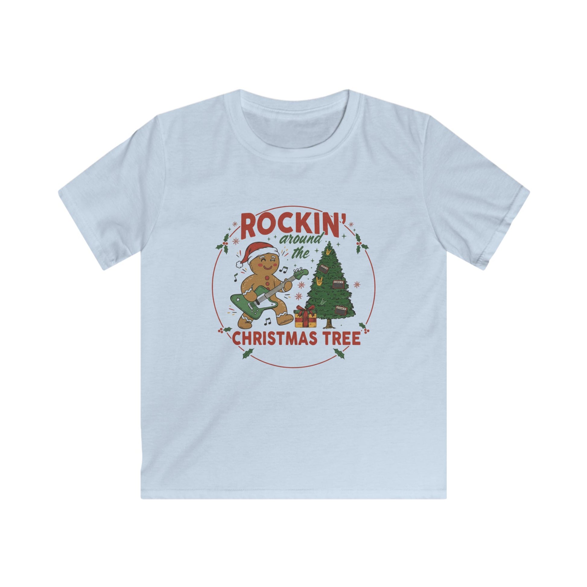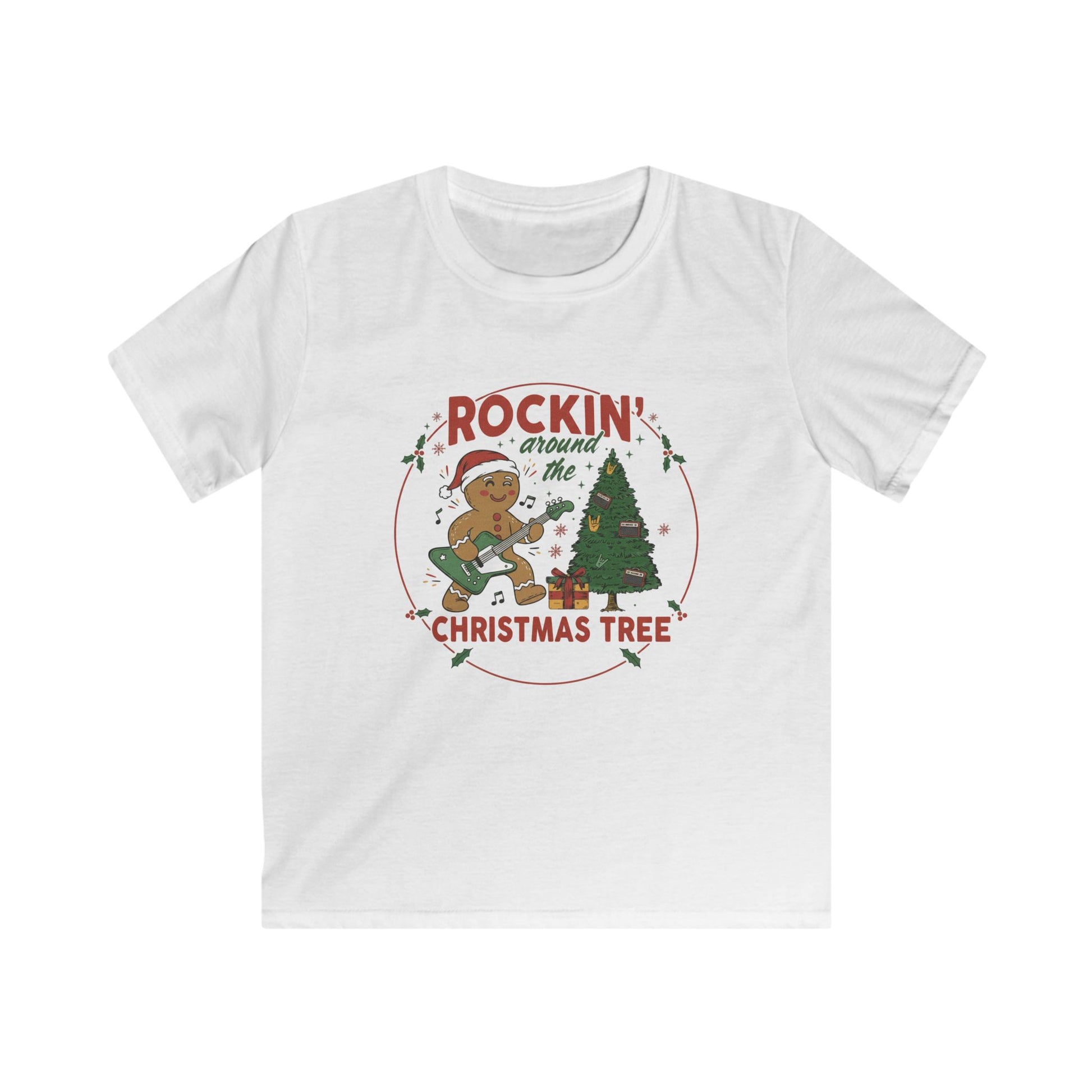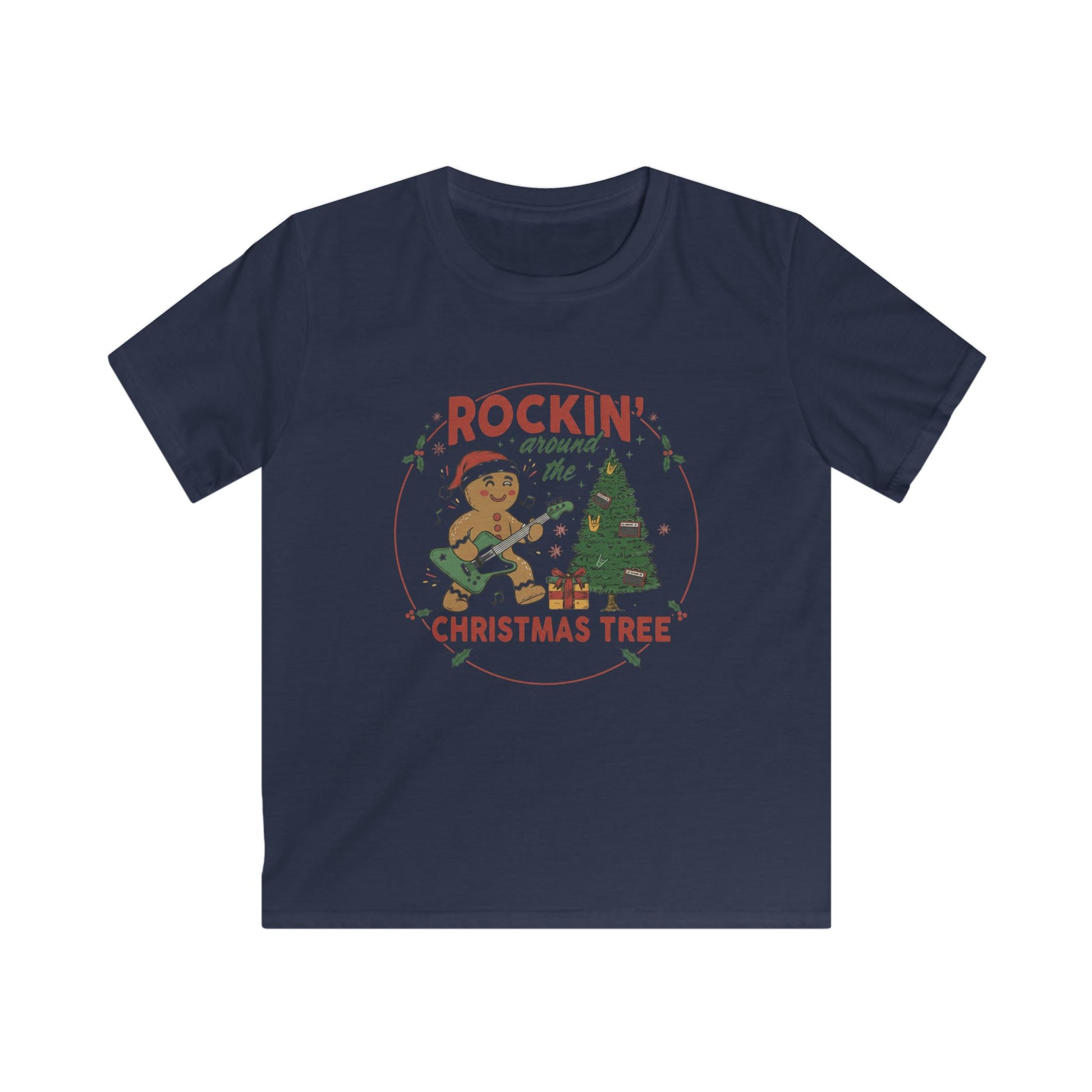 Turn up the holiday cheer with this fun and festive kids tee that’s perfect for your little rocker! Featuring an adorable gingerbread musician shredding on a guitar beside a decorated Christmas tree, this playful design brings all the upbeat, silly energy of the season.