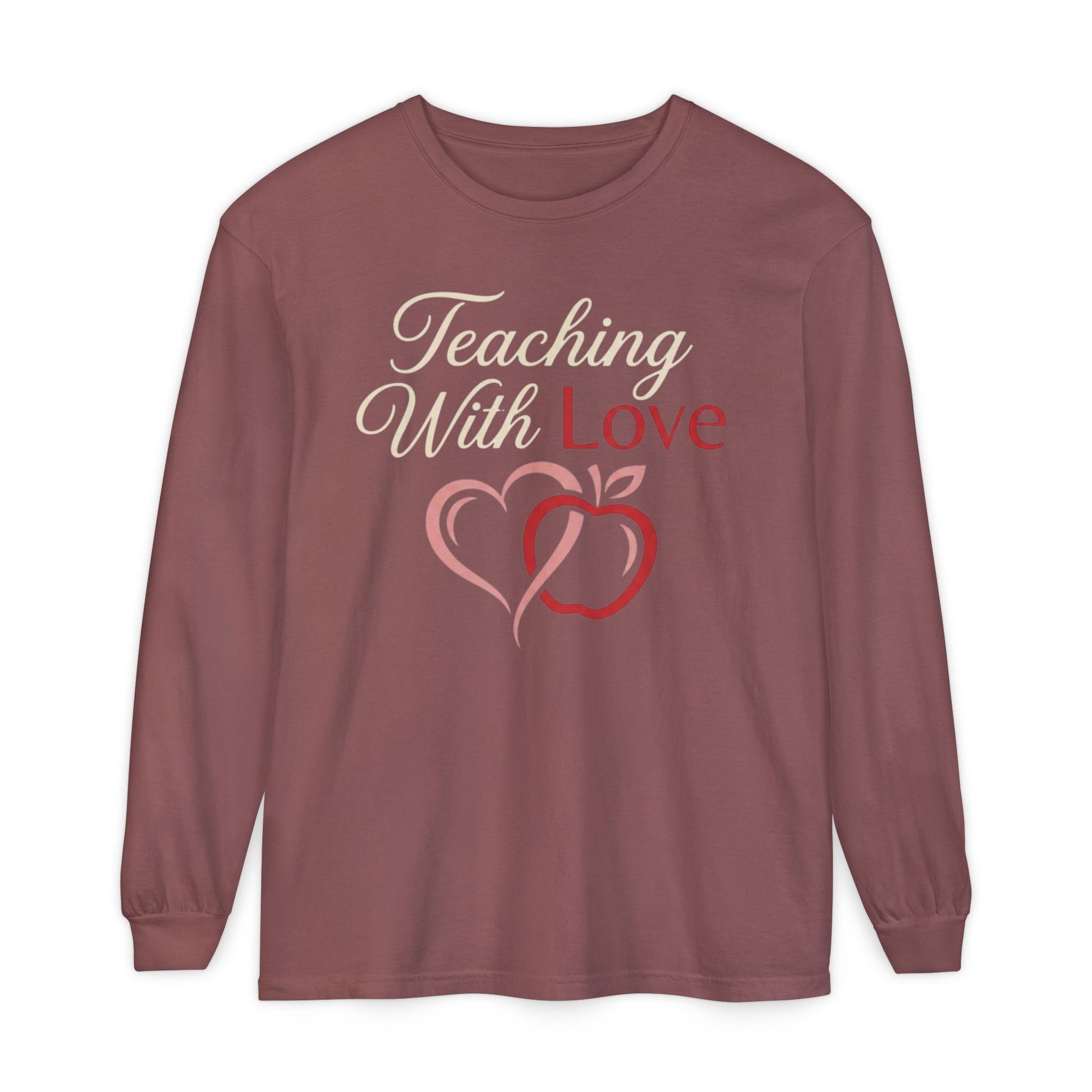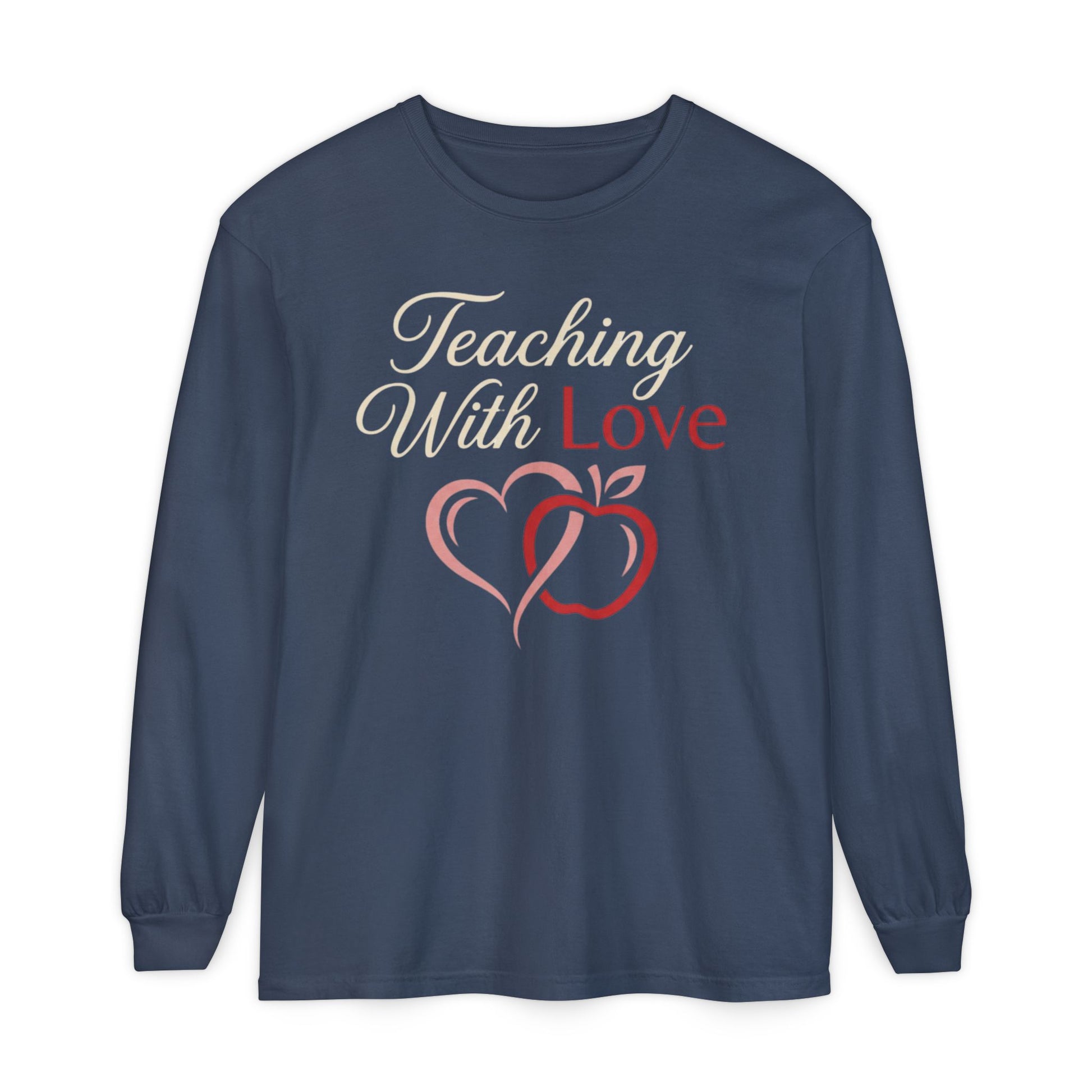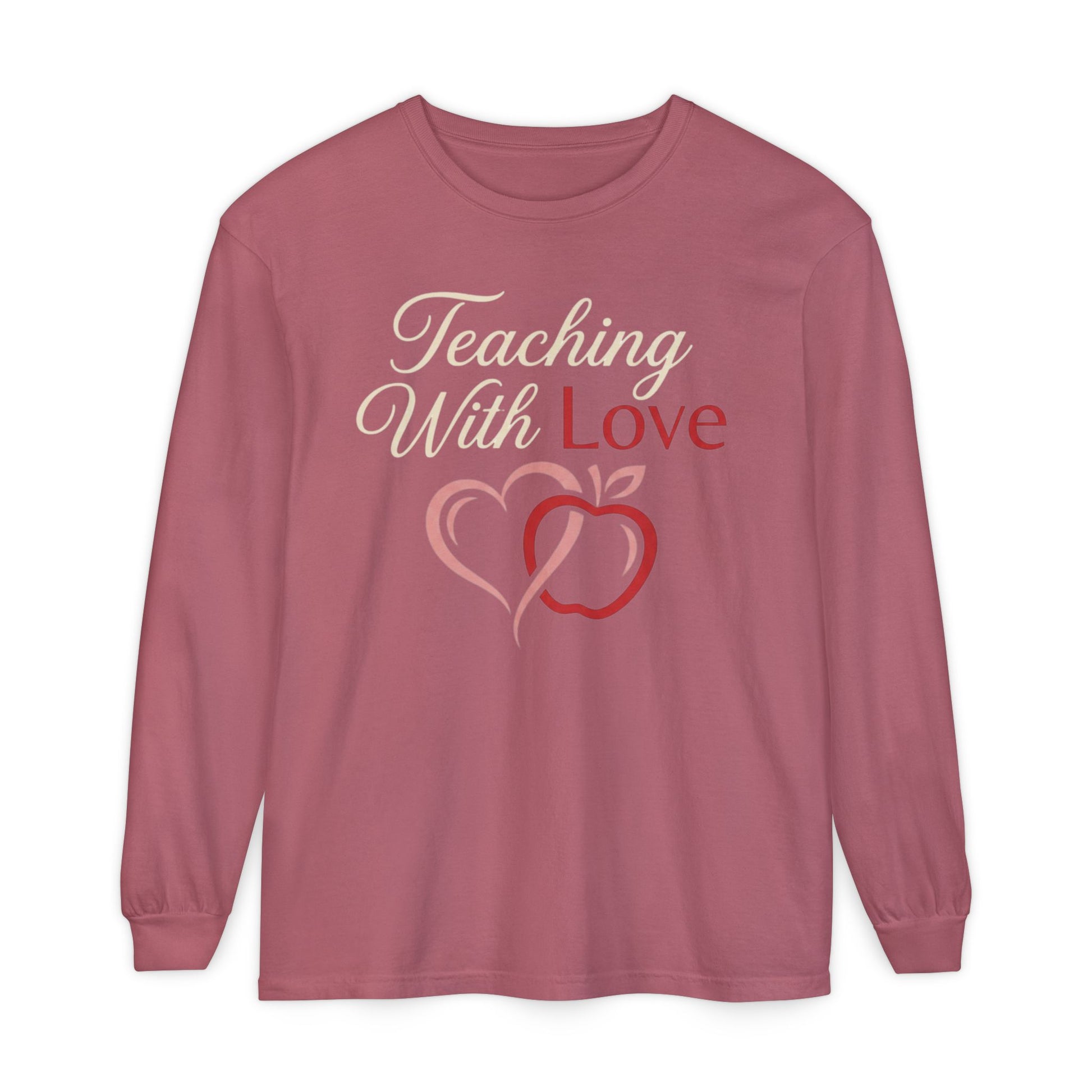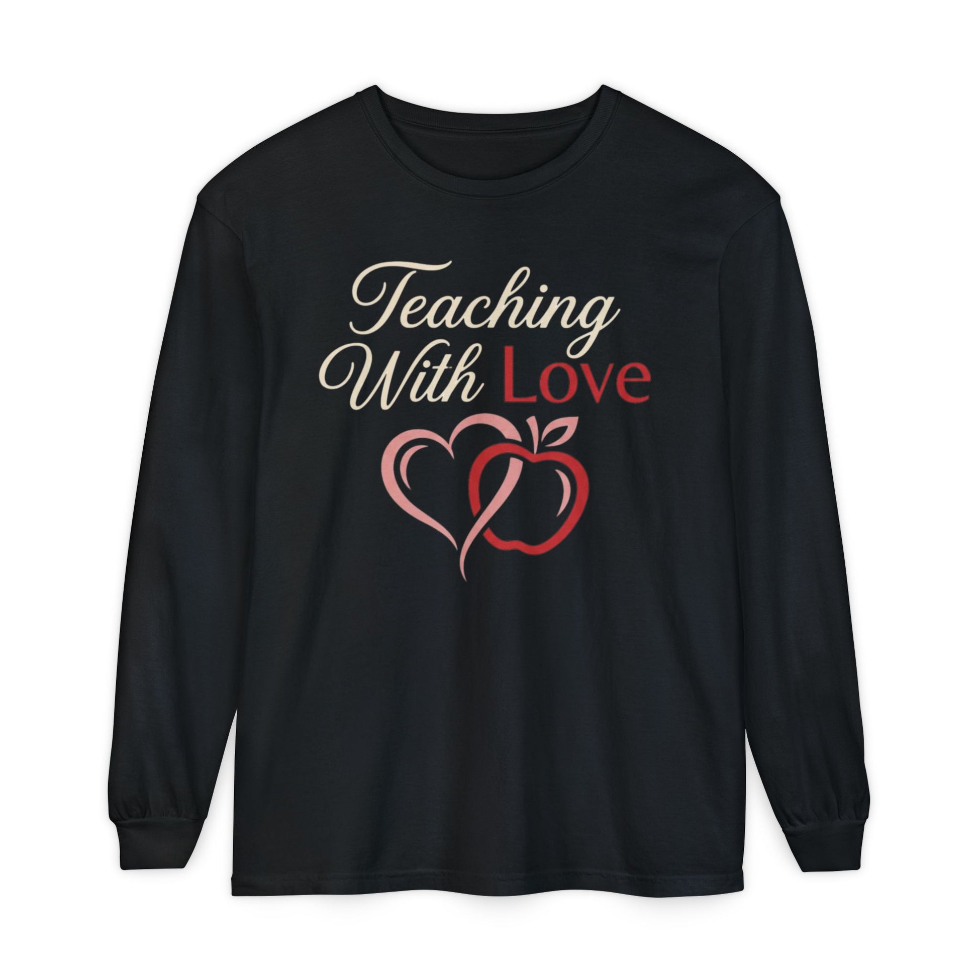 Teaching With Love Long Sleeve Tee — Teacher Apple Heart Design