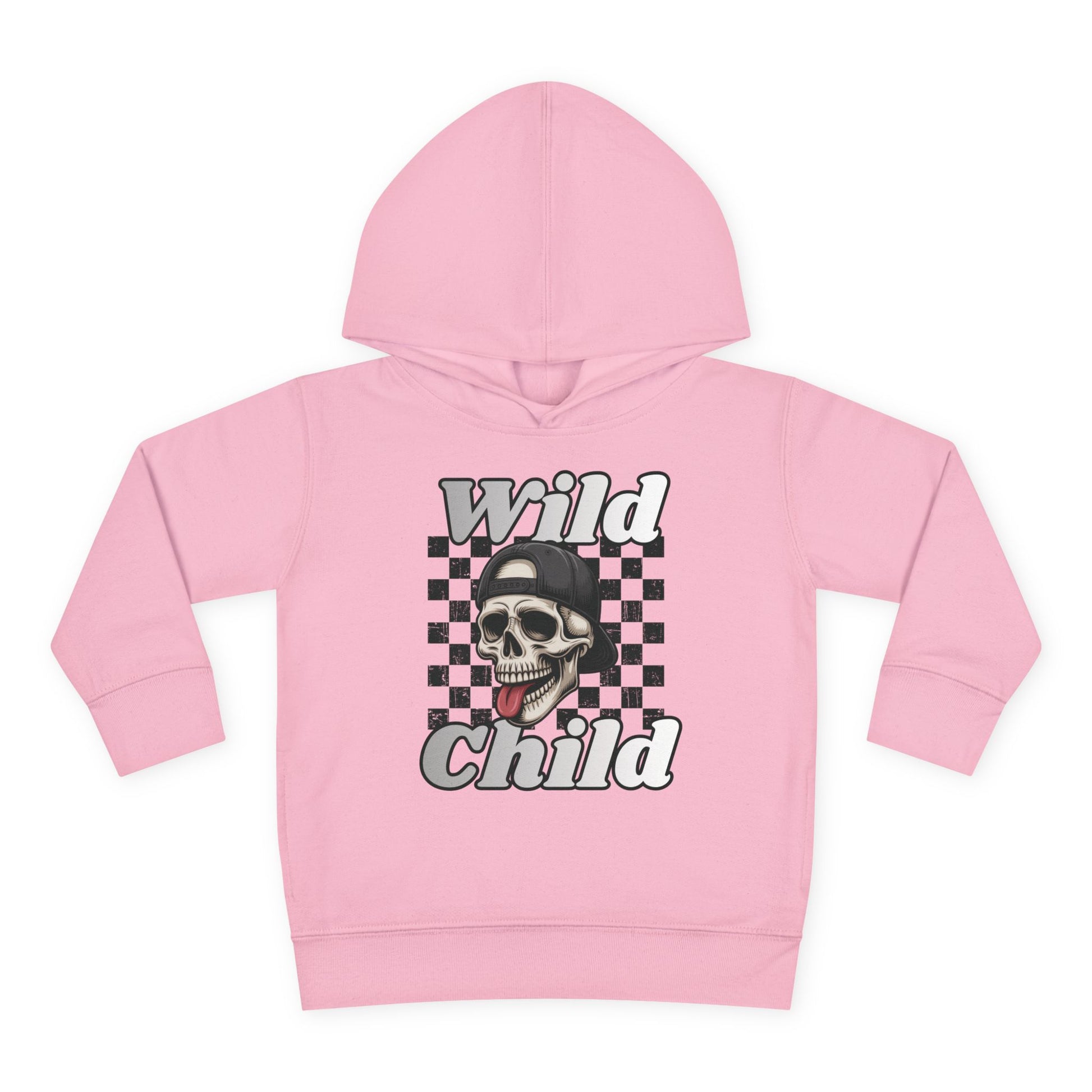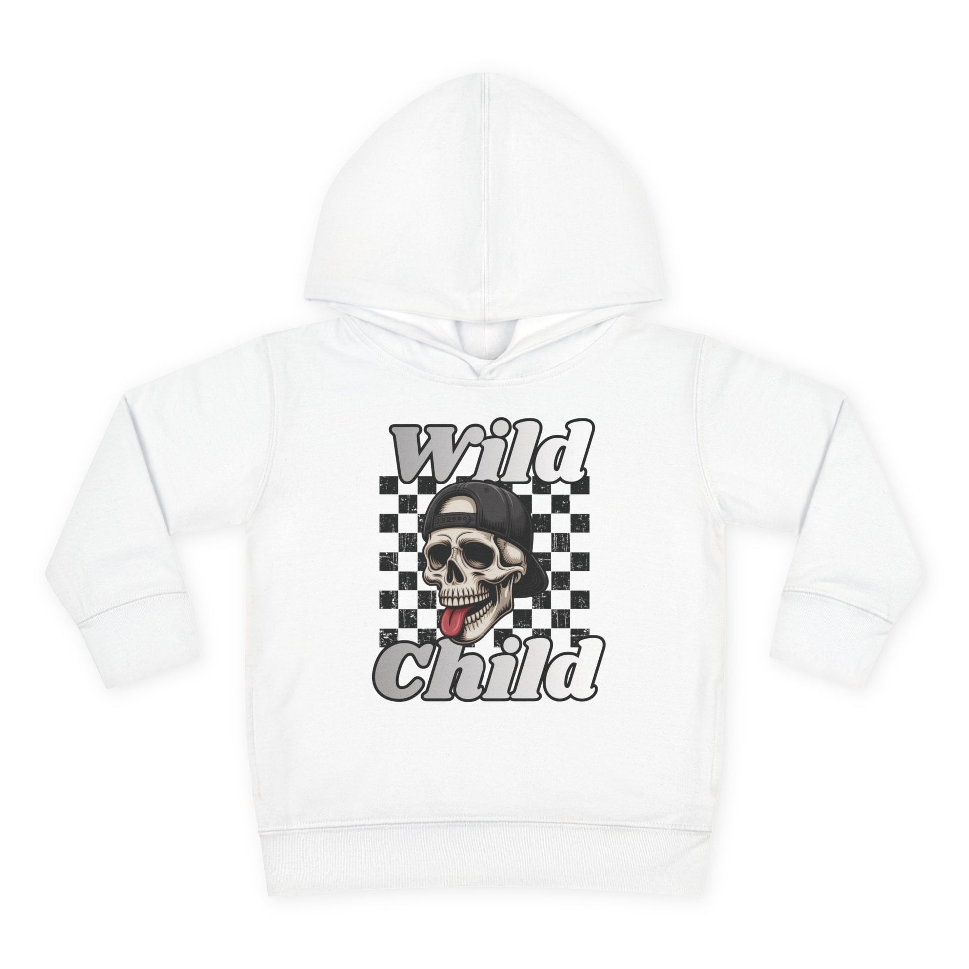 Kids Pullover Fleece Hoodie - Toddler Wild Child Tongue-Out Skull and Checkerboard Design