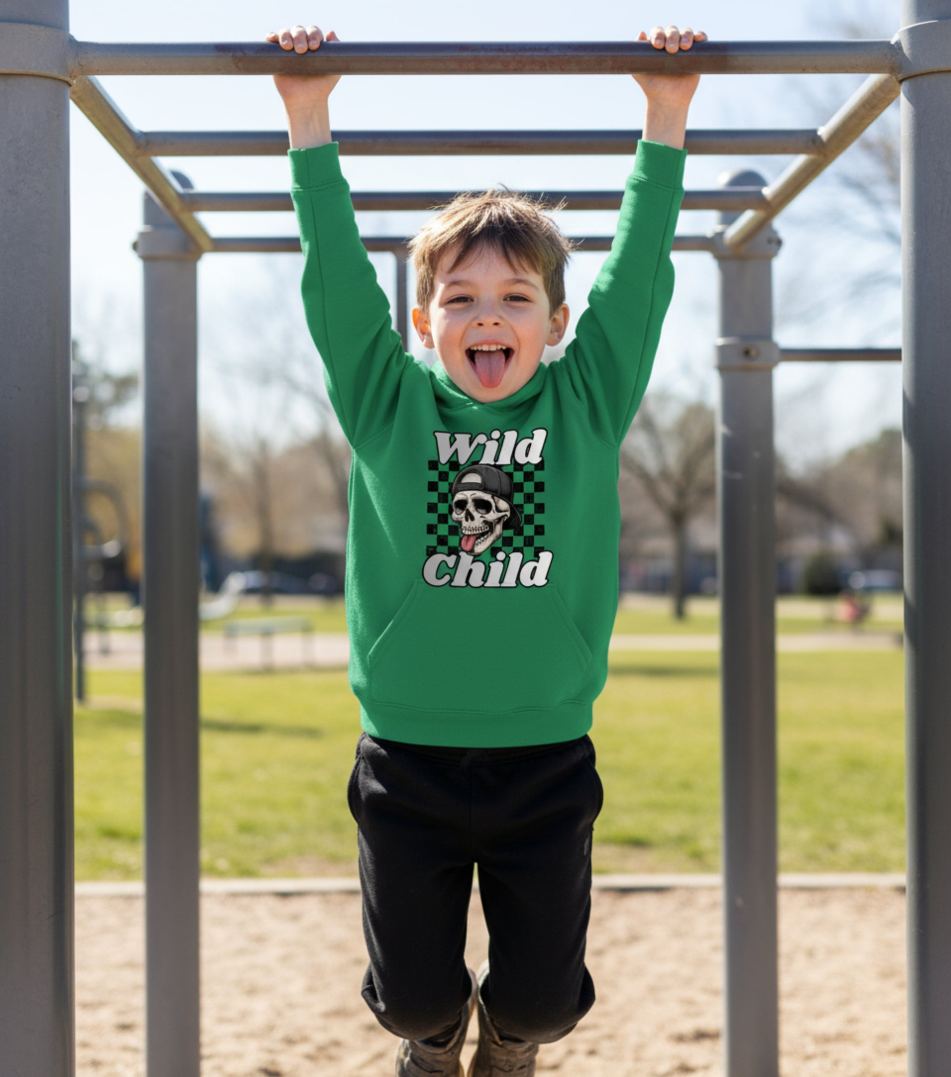 A bold little hoodie made for the kid who’s always climbing higher, running faster, and laughing louder. This midweight fleece keeps your wild one warm and cozy, while the tongue-out skull and checkerboard design adds the perfect touch of playful rebellion.