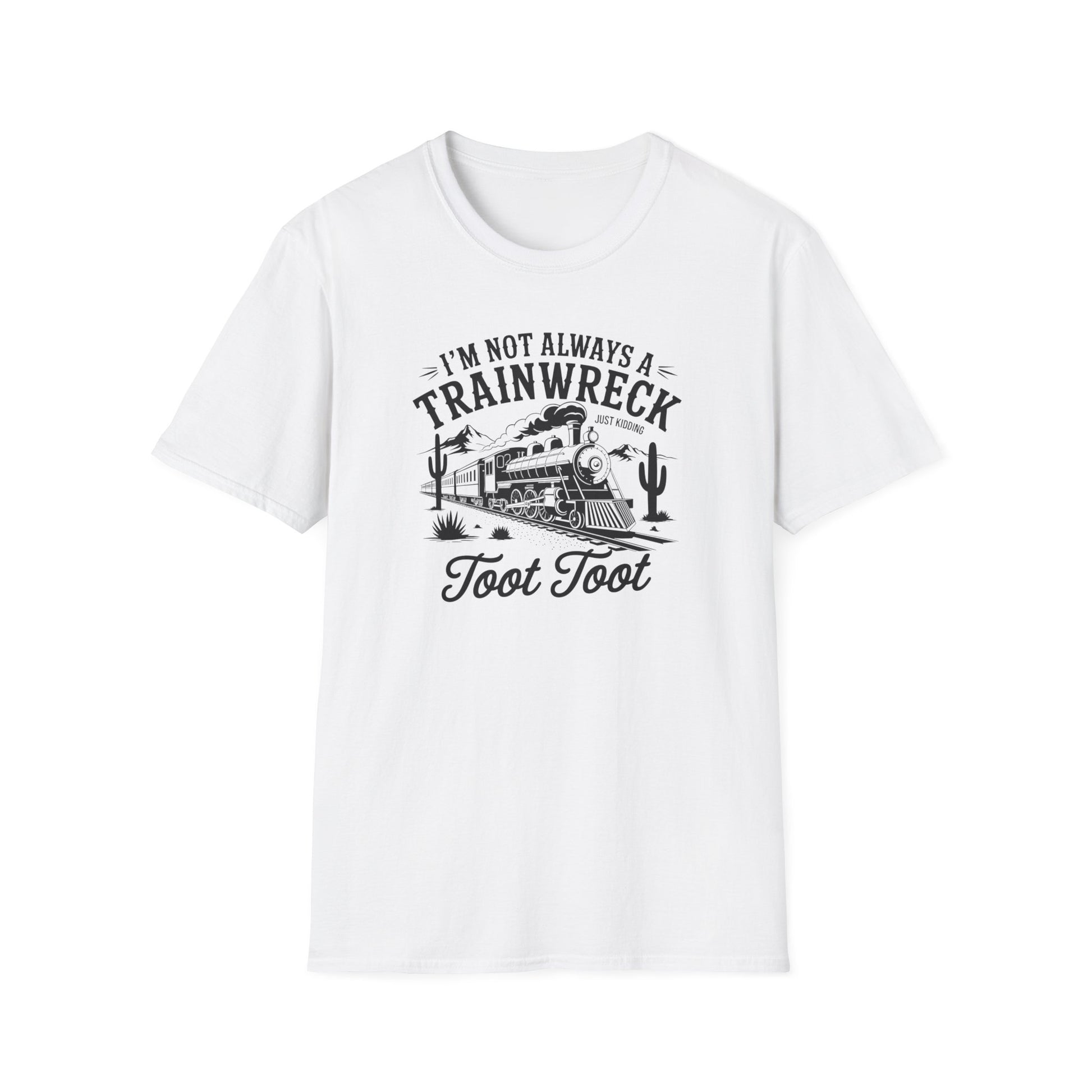 Bring a little humor to your wardrobe with this bold and cheeky graphic tee! Featuring the saying “I’m Not Always a Trainwreck — Just Kidding, Toot Toot”, this shirt perfectly captures that mix of chaos and confidence we all relate to.