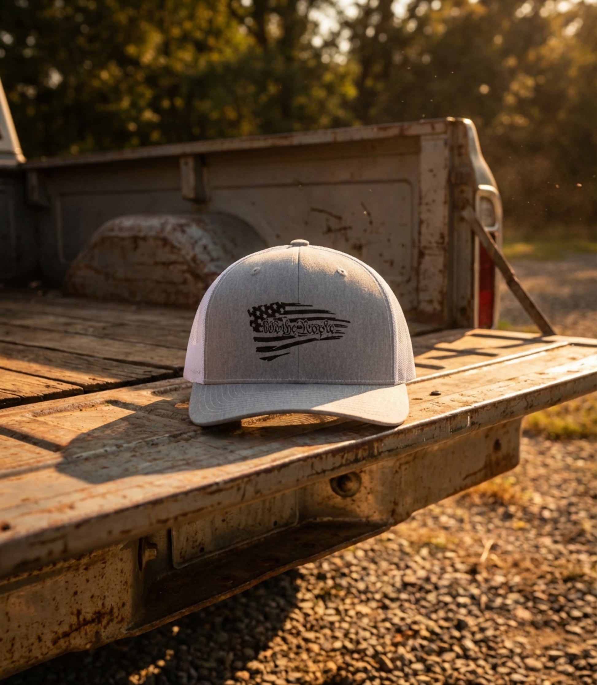 A classic statement with timeless meaning. This Richardson 112 trucker hat features a distressed American flag embroidery with “We The People” stitched across the center—bold, patriotic, and rooted in pride. The black-on-gray design keeps it neutral and easy to style, making it a go-to piece for everyday wear.