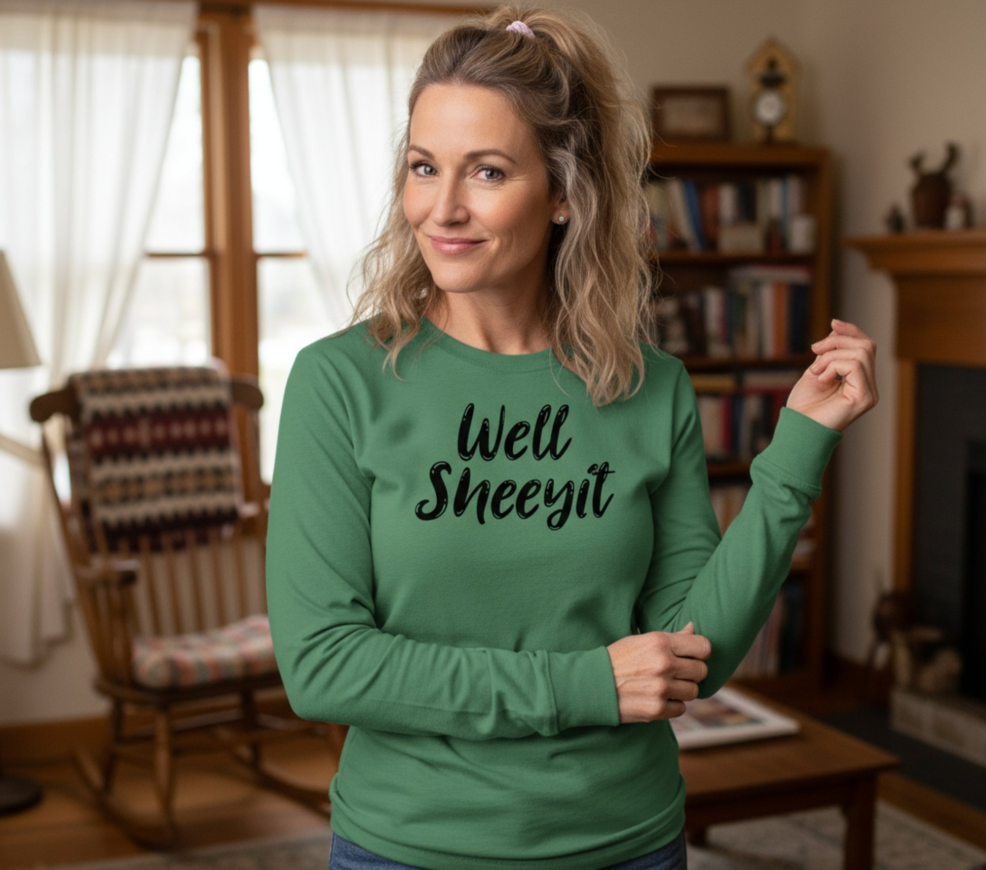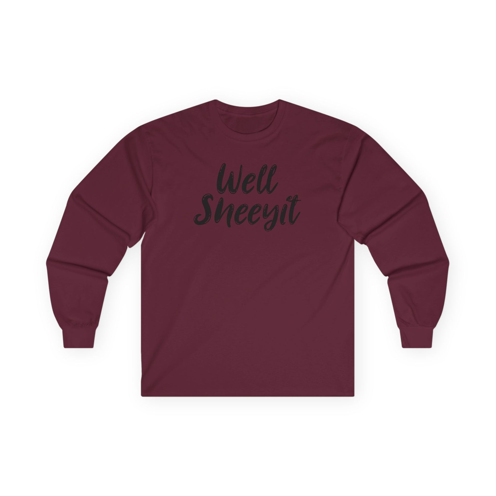 Bring some humor and southern sass to your everyday look with this Well Sheeyit long sleeve tee. Featuring bold, playful lettering across the front, this shirt perfectly balances laid-back charm with attitude. Whether you’re lounging at home, running errands, or grabbing coffee with friends, it’s the go-to tee for anyone who appreciates a good laugh and a comfortable fit.