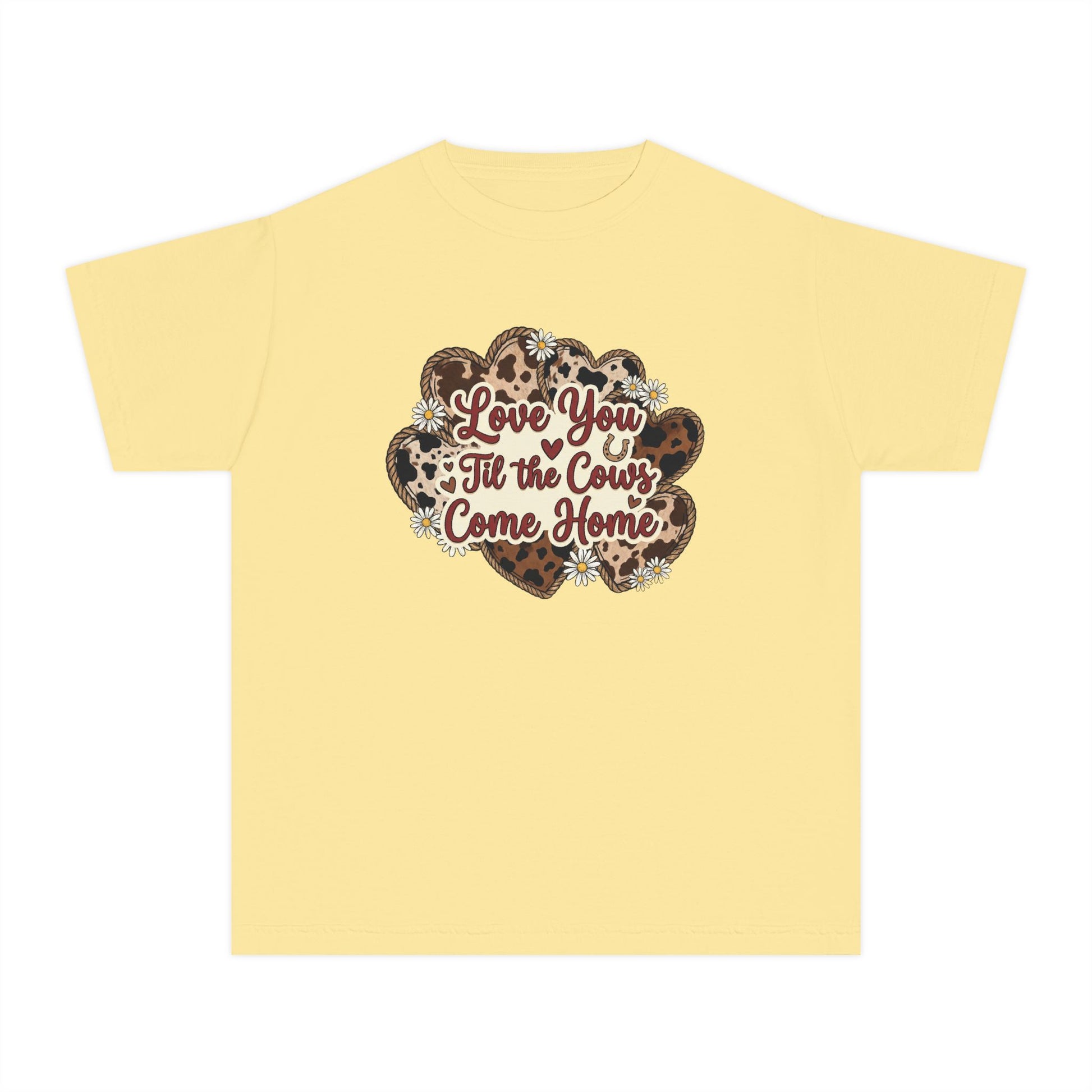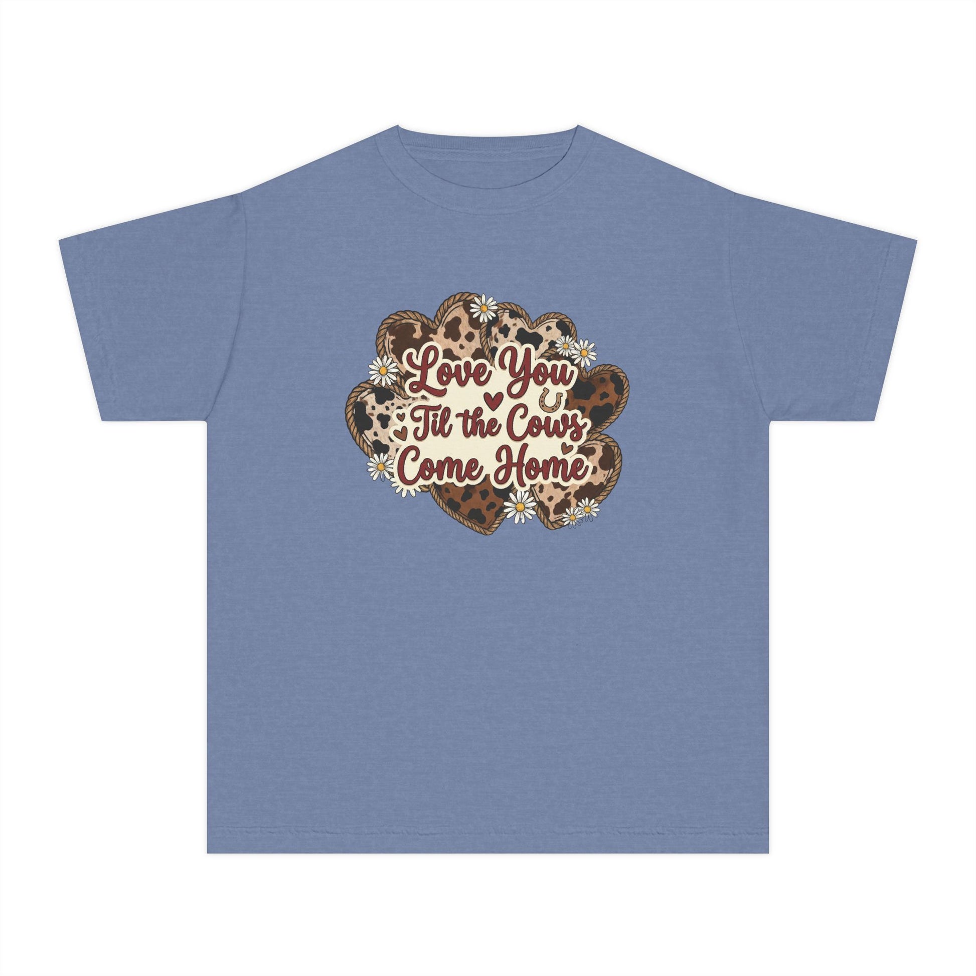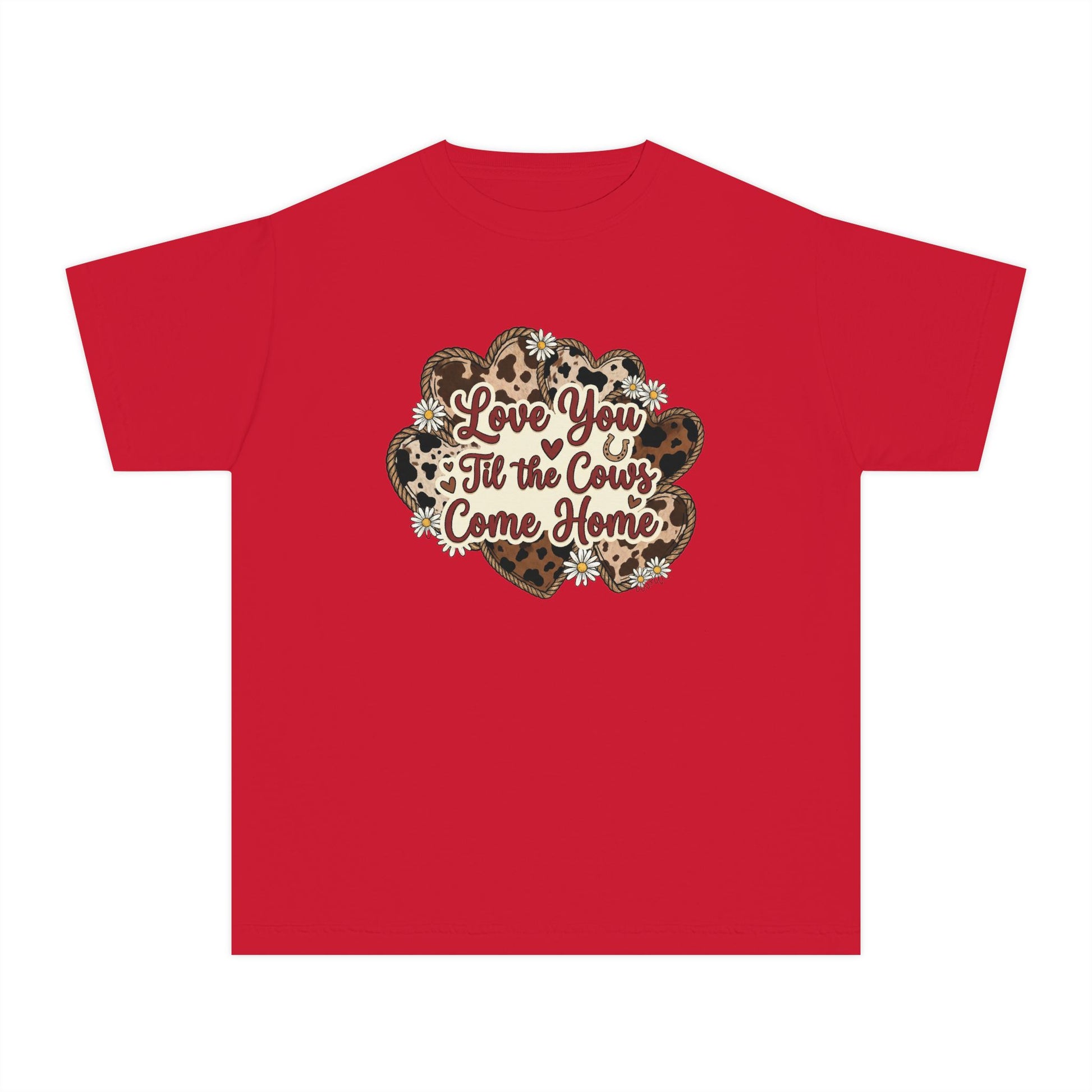 Youth Tee — "Love You 'Til the Cows Come Home" Heart Kids Shirt